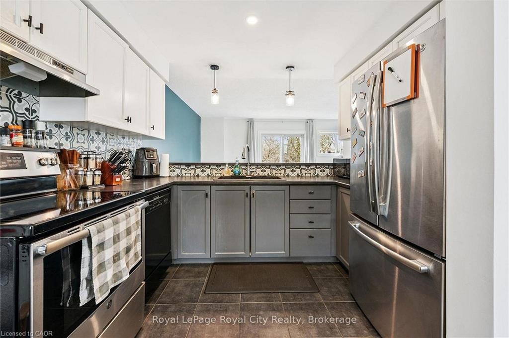 If you've spent any time in Guelph, you know that finding a townhouse with two parking spots is about as likely as finding a parking space downtown on a Saturday-nearly impossible. Yet, here we are at 26-426 Grange Road, offering a rare duo of designated spots (#46 and #47) and a view that doesn't involve staring at your neighbor's siding. Backing directly onto private green space and local trails, this home provides a level of privacy that's hard to come by in the Starwood area. The main floor is designed for people who actually use their kitchens. You'll find stainless steel appliances and a breakfast bar that overlooks the open-concept living and dining area. The laminate flooring can handle the foot traffic, and the sliding glass doors lead to a raised deck where the only spectators are the trees. The layout and the natural light from the massive landing window floods the home with plenty of light. Upstairs, the primary bedroom claims the best view in the house, overlooking the greenery. Two additional bedrooms share a four-piece bath, offering plenty of room for a home office or a place to hide the laundry you haven't folded yet. The walk-out basement adds another layer of utility, featuring a rec room with its own covered deck and a flex space perfect for a desk. You can literally step out of your lower level and hit the trails. It's the Royal City lifestyle without the Royal City price tag.