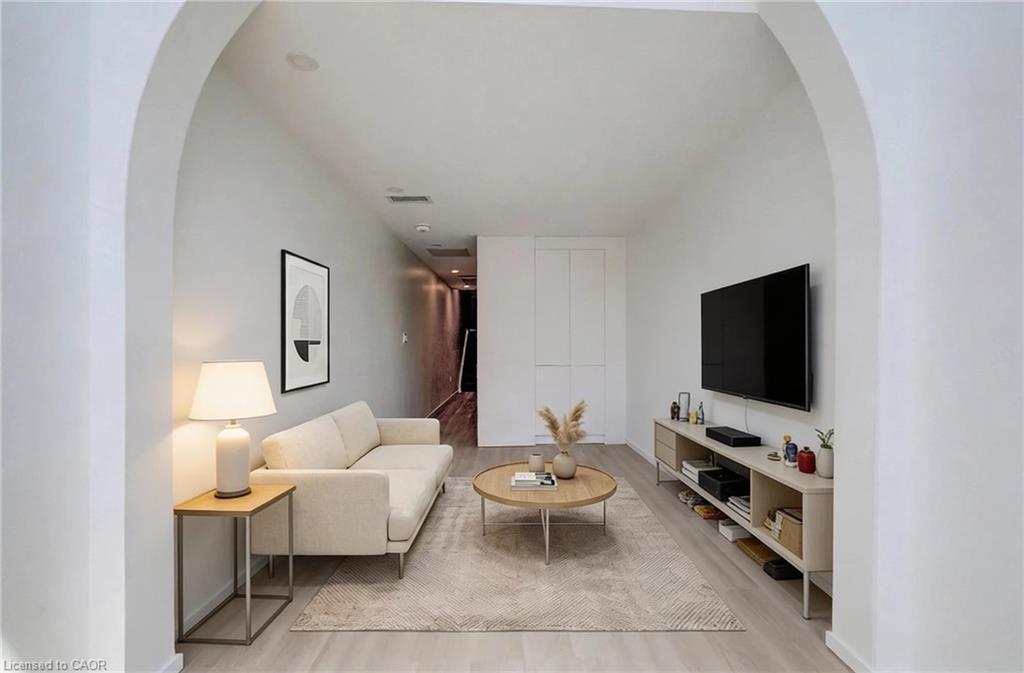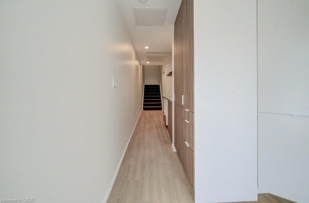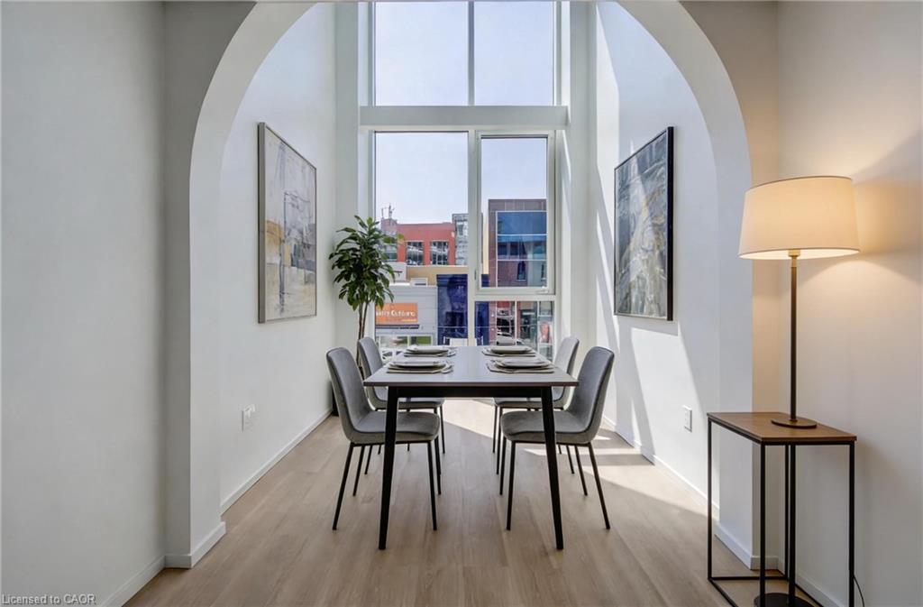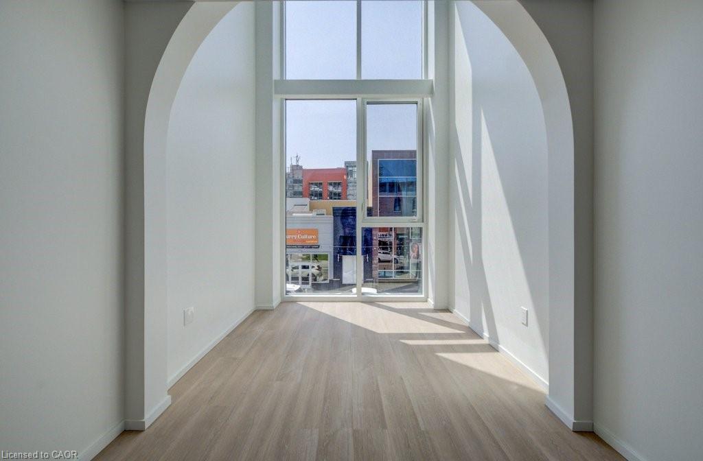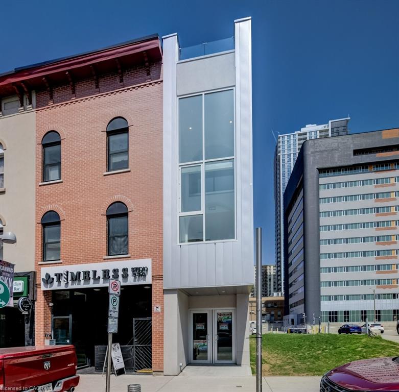 Welcome to a truly one-of-a-kind opportunity in the heart of downtown Kitchener—where modern design meets incredible versatility. This architecturally striking building, completed in 2025, offers a rare combination of two beautifully appointed residential units along with a vibrant commercial space, making it ideal for a live-work lifestyle, Airbnb or savvy investment. This impressive property spans over 3,200 sq ft, showcasing innovative design at its finest. Each residential unit features its own private entrance, leading into a dedicated hallway & staircase that enhances privacy. Residential Unit A is filled with character, highlighted by a dramatic two-storey window overlooking lively King Street. Unique rounded ceiling details add softness to the modern aesthetic, while the primary loft suite features a glass-railed overlook to the living space below. Upstairs, the bedroom includes a full ensuite, complemented by a stylish powder room on the main level for guests. A rooftop patio with views over King Street provides the perfect urban retreat. Residential Unit B offers a similar layout with its own distinct charm. A striking two-storey window frames views of Goudies Lane. Enjoy a private balcony off the living area, while the upper-level suite features a full ensuite and open-to-below design. A convenient main-floor powder room and a rooftop patio with sweeping skyline views complete the space. At street level along Goudies Lane, a 600 sq ft commercial unit presents endless possibilities—perfect for a boutique shop, café, takeout concept, or contemporary office. The space includes rough-ins for a kitchen & accessible washroom rough-ins and has one dedicated parking spot. With a Walkscore of 99, this prime downtown location puts everything at your doorstep. Just steps from the ION LRT stop & steps to the Kitchener Market, local cafés, nightlife, shopping, and Centre in the Square.