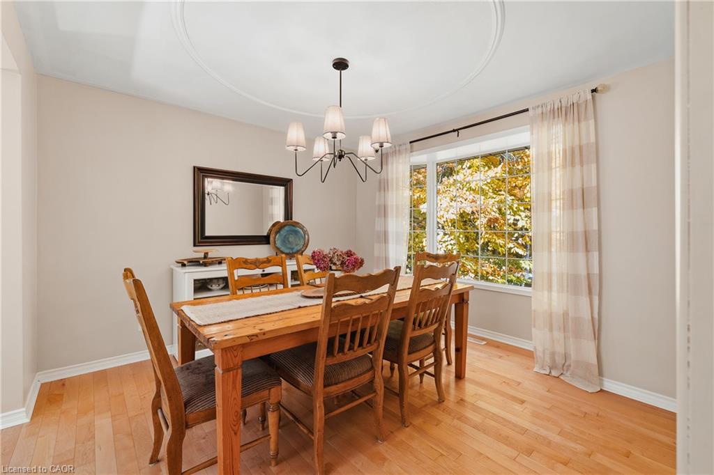 Discover relaxed living in this picturesque Elmira home, tucked away on a tree-lined street in one of the town’s most inviting neighbourhoods. Surrounded by mature trees and perennial gardens, this property sits on just over a quarter acre and offers a private backyard retreat. Spend your summer days lounging by the inground pool, complete with a new heater and liner (2024 & 2025), or unwind on one of two oversized decks, one brand new, each offering a peaceful view of the backyard oasis. The space is beautifully framed by armour stone, lush greenery, and a fully fenced yard, creating the perfect backdrop for outdoor entertaining or quiet evenings. Out front, you’ll find a covered porch, parking for up to 8 cars, an electric car charger, and a 1.5-car attached garage, a rare combination of charm and practicality. Inside, the home welcomes you with a tiled foyer that opens into a bright living room featuring new hardwood flooring, pot lights, and a large picture window that fills the space with natural light. The dining room offers the perfect spot for family meals and celebrations. The refreshed kitchen, accessible from both the living and dining rooms, features an island with sink and breakfast bar, and an adjoining casual dining area addition overlooking the yard. The sunken family room just off the kitchen features a stone wood-burning fireplace, cozy reading nook, and views of the pool and gardens beyond. A powder room and refreshed mudroom with side-door access complete the main level. Upstairs, three bedrooms, 4-piece main bath, plus a few steps lead to the primary suite addition, with walk-in closet and ensuite with double vanities, your own private haven. The walkout basement adds even more living space which has new flooring, and 8-foot ceilings with pot lights. Laundry and a newer furnace are also located here. This home blends everyday comfort with a leisurely lifestyle, offering space to entertain, unwind, and grow, all in a sought-after Elmira location.