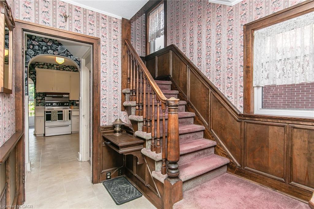 LOCATION, LOCATION, LOCATION. Discover the charm and potential of this character-filled 3-Bedroom home located in the desirable, tree lined East Ward neighbourhood. With an attached single garage, spacious principal rooms, and hardwood floors throughout, this property offers the perfect blend of classic style and opportunity for updating to suit your taste. Step inside to a large formal Living room featuring a bay window and cozy gas fireplace, ideal for family gatherings. A separate Dining room with walk-out to a private patio makes entertaining a breeze. The main floor also offers an eat-in Kitchen with a built-in corner cabinet and pantry, plus a convenient mudroom with a 2-piece Bath and provides direct access from the backyard. Upstairs, you'll find 3 spacious Bedrooms, one with a walk-out to a private balcony, along with a 4-piece Bath. The large unfinished attic provides excellent potential for additional living space or abundant storage. The finished basement adds even more living area with a Recreation room, featuring hardwood floors and a second gas fireplace, a 2-piece Bath, laundry, workshop, and extra storage. Outdoors, enjoy the good-sized backyard with mature landscaping, a covered patio, and a multi-level deck, perfect for relaxing or entertaining. The exterior is in excellent condition with newer windows, aluminum fascia, soffits, and eaves. This home offers fantastic expressway access, close proximity to the Kitchener Memorial Auditorium, Centre in the Square, and is in walking distance to schools, a leash-free dog park, and Frederick Street Mall. Don't miss this opportunity to make this East Ward gem your own.