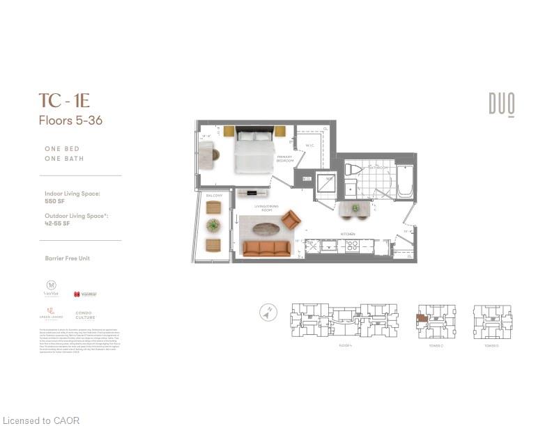 Stylish 1-bedroom suite at DUO Tower C in Station Park offering 550 sq ft of thoughtfully designed interior space plus a private balcony. One Parking Space included! The open-concept living and dining area flows into a modern kitchen featuring quartz countertops and stainless steel appliances—perfect for both everyday living and entertaining. The spacious primary bedroom includes an oversized layout with room for a dedicated work nook, along with a large walk-in closet. Enjoy the convenience of in-suite laundry. Residents of Station Park have access to premium amenities including a Peloton studio, bowling lanes, aqua spa with hot tub, fully equipped fitness centre, SkyDeck outdoor gym and yoga deck, sauna, and more. Ideally located just steps from shops, restaurants, schools transit, Google, and the Innovation District, this home offers the perfect blend of comfort, style, and urban convenience.