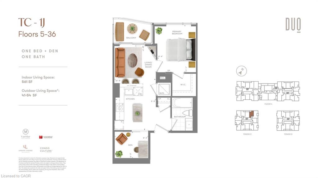 Bright and spacious 1-bedroom + den suite in DUO Tower C at Station Park, offering 561 sq ft of thoughtfully designed interior space plus a private balcony. The open-concept living and dining area flows seamlessly into a modern kitchen complete with quartz countertops and stainless steel appliances. The versatile den features a closing glass door, making it an ideal private workspace for working from home. Additional conveniences include in-suite laundry and contemporary finishes throughout. Parking is included. Residents enjoy access to Station Park’s premium amenities, including a Peloton studio, bowling lanes, aqua spa with hot tub, fully equipped fitness centre, SkyDeck outdoor gym and yoga deck, sauna, and more. Unbeatable location just steps to shops, restaurants, transit, Google, and the Innovation District.