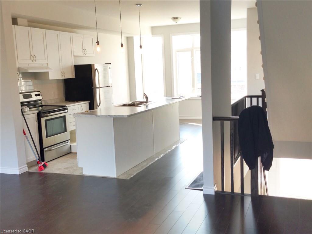 FANTASTIC END UNIT TOWNHOUSE AVAILABLE FOR LEASE / RENT in EAST GALT - CAMBRIDGE! This modern newer home is sure to impress. Covered front entrance leading into the large foyer. Inside access to the single car garage. Excellent Rec-room with sliding door to the backyard. The 2nd floor offers an open concept layout with laminate wood floors, Stunning eat-in Kitchen with island. Large windows, deck and 2 pc bathroom. The 3rd floor features 3 bedrooms and 2 full bathrooms. The Master bedroom has a walk-in closet at private ensuite bathroom. Highly desired Location close to many desirable amenities. Grass is to be cut by the Tenant as well as the shoveling of the private driveway. 2 vehicle private parking and visitor parking available for guests. $2695 per month + utilities. Available November 1st or later. Don't miss out on this one. Request more information today!