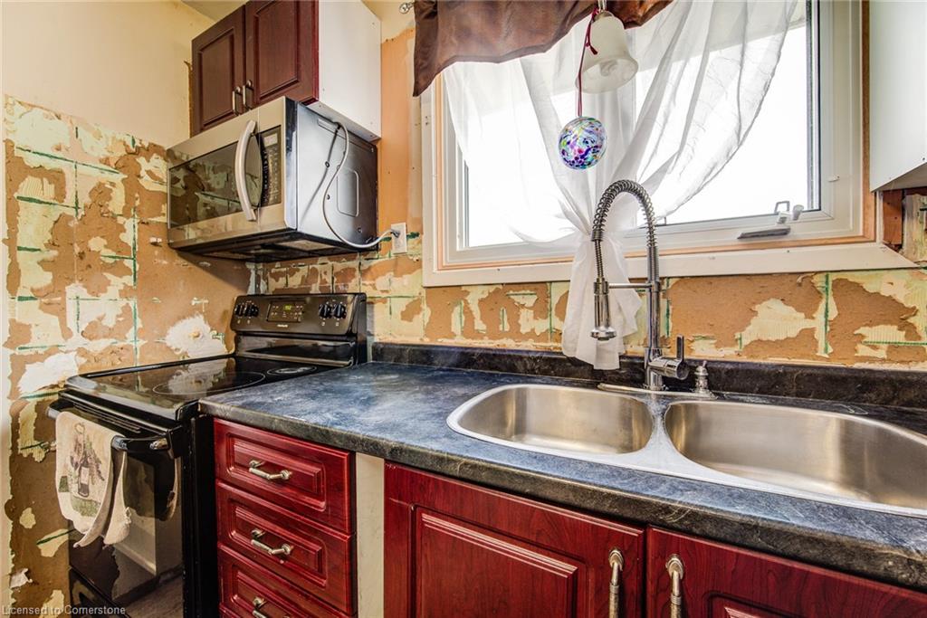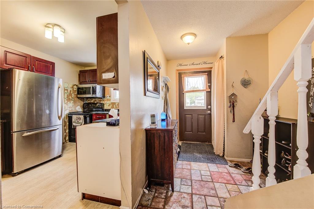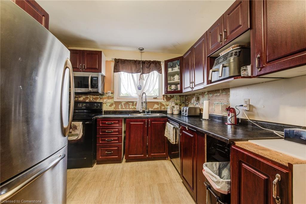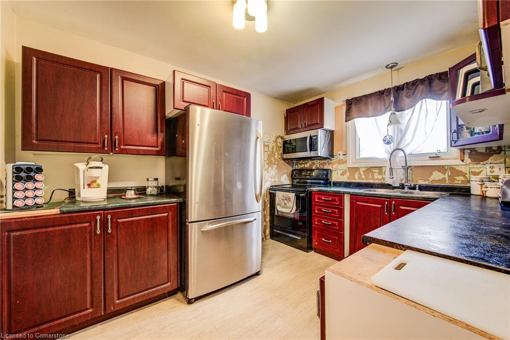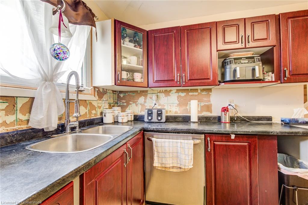Bring your ideas! Attention renovators or those not afraid of cosmetic TLC to make this home their own. This home needs some work but is located on a fantastic family friendly street. This semi features 3-bedrooms and 2-bathrooms. Located in the quiet and family-friendly Forest Heights neighborhood of Kitchener. Perfectly situated close to shopping, parks, schools, and highway access, this home offers both opportunity and convenience. The spacious kitchen features ample cabinetry for all your storage needs and flows seamlessly into the dining area—ideal for entertaining or everyday family meals. The dining room opens to a cozy living room with direct access to a covered deck, perfect for relaxing or hosting guests. Step outside to a fully fenced backyard complete with a shed for additional outdoor storage. Upstairs, you'll find all three well-sized bedrooms and a 4-piece bathroom. The partially finished basement adds extra living space with a rec room, a 2-piece bathroom, and laundry area—offering great potential for future customization. Don't miss your chance to own this well-maintained home in one of Kitchener’s most desirable communities!