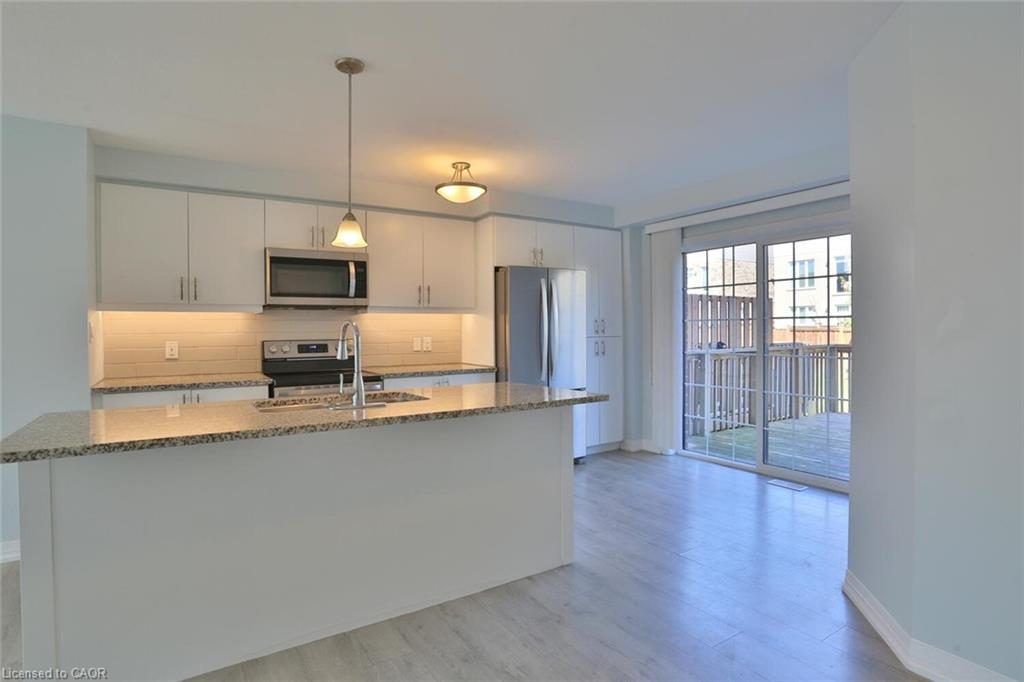 NEWER TOWNHOUSE FOR LEASE CLOSE TO 401. Beautifully finished top to bottom 3-bedroom, 3-bathroom home. Open Concept main floor with granite counter tops and stainless-steel appliances and huge island in the kitchen. Modern laminate flooring and ceramics throughout. Master Bedroom with ensuite bathroom, ceramic/glass shower and a walk-in closet. Washer & dryer. Central Air and garage door opener with remotes. NEW ELEMENTARY SCHOOL. Photos as per vacant unit with a few virtually staged. Utilities paid by tenants include water heater and softener rentals. Good credit is required, and a full application must be submitted.