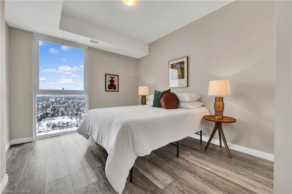 Welcome to Charlie West! Views have no bounds with this UPGRADED 2 bedroom, 2 washroom + 1 Underground parking unit located in an excellent cared for condominium on the 27th floor, right in the heart of downtown Kitchener. With a scenic cityscape view from the window walls, sprawling from the living room to the bedroom - there is an abundance of natural light. Get ready to bask in the evening and enjoy stunning views from the comfort of your home. Or step out onto the large balcony to soak up the spring/summer/fall breeze and take in the beauty of the seasons. With high ceilings, all new stainless steel appliances, beautiful backsplash and countertops, hosting and entertaining will be an absolute joy in this home. With no shortage of storage either, there is plenty of cupboard space and closets throughout the unit, as well ensuite laundry which is tucked away perfectly to keep your home neat and tidy looking. Close to many amenities and attractions including; The Museum, The Aud, Victoria Park, Conestoga College, Iron Horse Trail, Grand River Hospital, and tons of restaurants and entertainment.