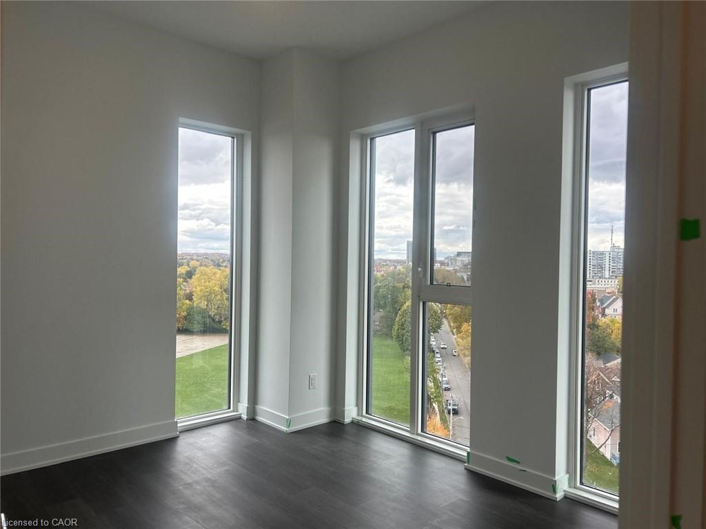 Welcome to DUO Condos, the latest addition to the vibrant Station Park community in downtown Kitchener-where urban convenience meets modern, elevated living. This bright and beautifully finished 1-bedroom suite is perched on the 27th floor and offers an open-concept layout with 9-ft ceilings, floor-to-ceiling windows, quartz countertops, sleek cabinetry, high-efficiency stainless steel appliances, in-suite laundry, and a private balcony with stunning city views.The building provides exceptional comfort and peace of mind with 24-hour concierge service. DUO is renowned for its unmatched amenities, including a two-lane bowling alley with lounge, games room with bar, hydro pool, swim spa, unisex sauna, and a fully equipped fitness centre featuring a Peloton studio plus yoga and Pilates areas. The outdoor amenity deck elevates your lifestyle even further, offering an outdoor gym zone, elevated yoga platform, table tennis court, leisure courtyard with astro-turf for lawn games, and beautifully landscaped terraces ideal for relaxation or entertaining.Perfectly located just steps from Google, the LRT, GO Station, restaurants, shops, Grand River Hospital, the Innovation District, and Victoria Park, you'll have everything you need right at your doorstep. This exceptional suite is available immediately-book your showing today and experience downtown living at its finest.