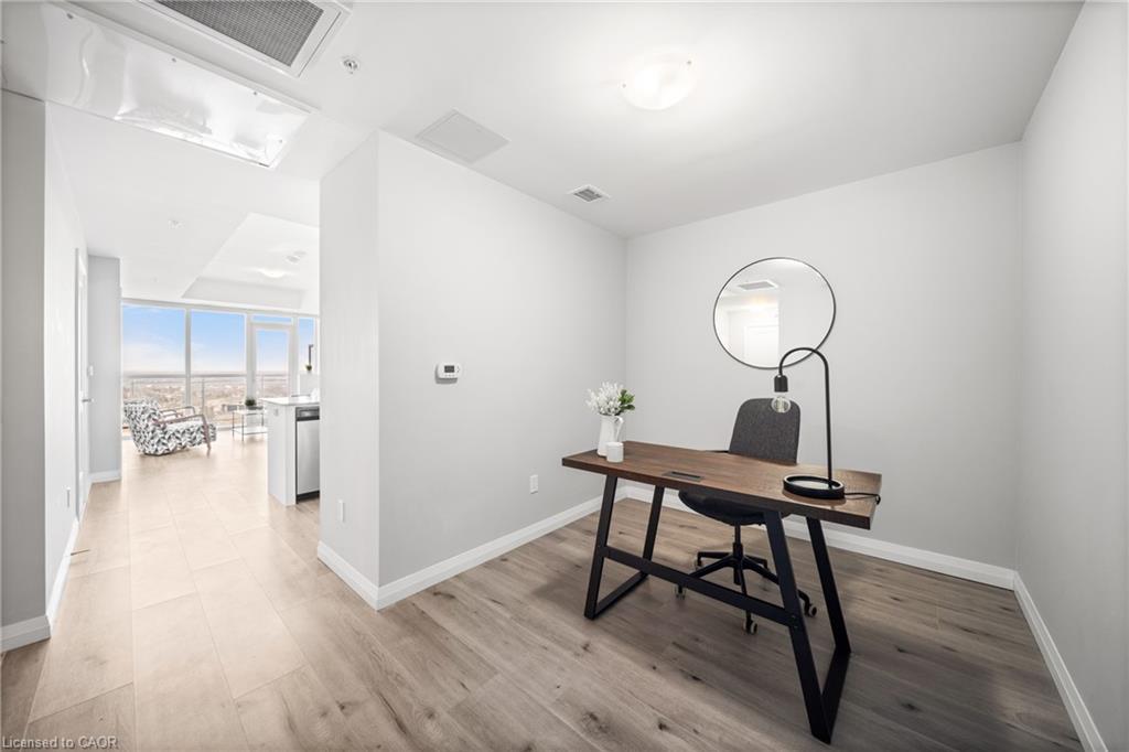 Experience urban living at its finest in this stylish one-bedroom plus den condo, perfectly situated just a two minute walk to the LRT station. Nestled within a modern and secure building, this condo offers a blend of contemporary design and convenience. Step into an open-concept living space that's thoughtfully designed to maximize both style and functionality. The living room boasts a walk-out to the balcony and large windows, filling the space with natural light that complements the modern finishes. The upgraded and sleek kitchen is equipped with stainless steel appliances, and granite countertops, making it a culinary enthusiast's dream. The spacious bedroom features a double closet. The versatile den can serve as a home office, guest room, or cozy reading nook, catering to your lifestyle needs. Enjoy your morning coffee or unwind after a long day on your private balcony, offering a lovely view of the cityscape. Additional amenities include in-suite laundry, secure underground parking, and a fitness center, rooftop terrace, and resident lounge. With Victoria Park, public transit, shops, and dining options just a short walk away, this condo delivers the perfect combination of luxury and urban convenience.