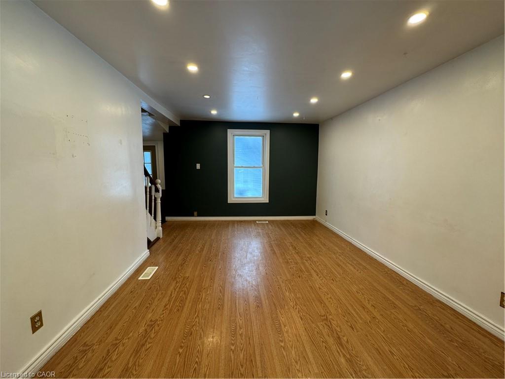 Rare opportunity with parking for up to 5 vehicles on a premium corner lot. This spacious, carpet-free 3-bedroom rental is move-in ready and features a bright main level with an updated 4-piece bathroom and a walk-out kitchen leading to a deck overlooking a beautiful, treed lot. The upper level offers two additional bedrooms and a 2-piece bathroom, while the basement includes a rec room and laundry. Ideally located near schools, parks, and amenities, this home is perfect with exceptional parking. photos are virtually staged