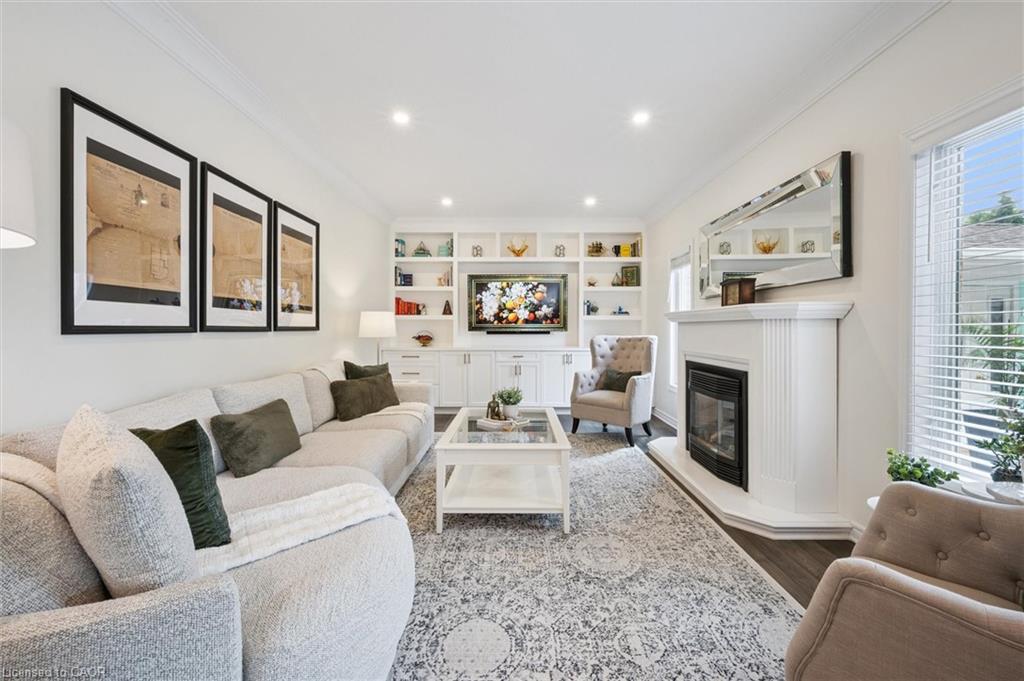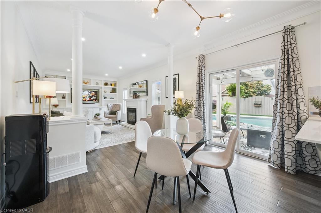 Stylishly Updated for Modern Living! Located in Guelphs sought-after south end, this beautifully upgraded home offers over 3,000 sqft of finished living space, including 3 bedrooms and 4 bathrooms perfect for todays busy family. With undeniable curb appeal, the home welcomes you with a charming covered porch and double-door entry into a bright, inviting foyer. The first floor boasts soaring 9-foot ceilings and hardwood floors, which continue throughout the second level. The formal dining room sets the tone for elegant entertaining, featuring full-height paneling, crown molding, and a striking contemporary chandelier.The heart of the home is the showstopping eat-in kitchen, complete with two-tone cabinetry, quartz countertops, stainless steel appliances, and a sunny breakfast area with walkout to the backyard. A cozy family room anchored by a gas fireplace and custom built-in bookshelves is the perfect space to unwind. Upstairs, rich hardwood flooring continues throughout, leading to the luxurious primary suite with a bay window, walk-in closet, and a spa-like 5-piece ensuite featuring a jetted Jacuzzi tub.The fully finished basement offers exceptional flexibility ideal for a home office, gym, playroom, or guest suite, complete with a full bathroom. Outside, the fully fenced yard is your private retreat, featuring an in-ground pool, mature landscaping, covered patio area, and an insulated pool house with hydro. Recent updates include a new pool liner, cover, heater, and equipment, as well as updated windows, furnace, AC, staircase, flooring, kitchen cabinetry, and much more!Located minutes from schools, parks, amenities, and the 401 this home truly has it all.