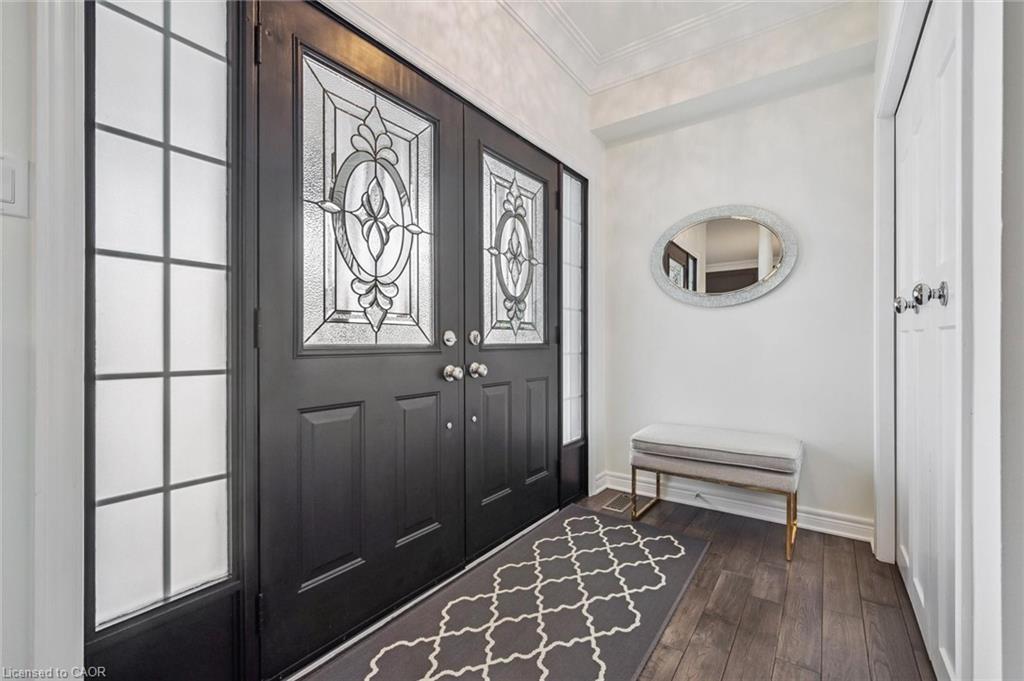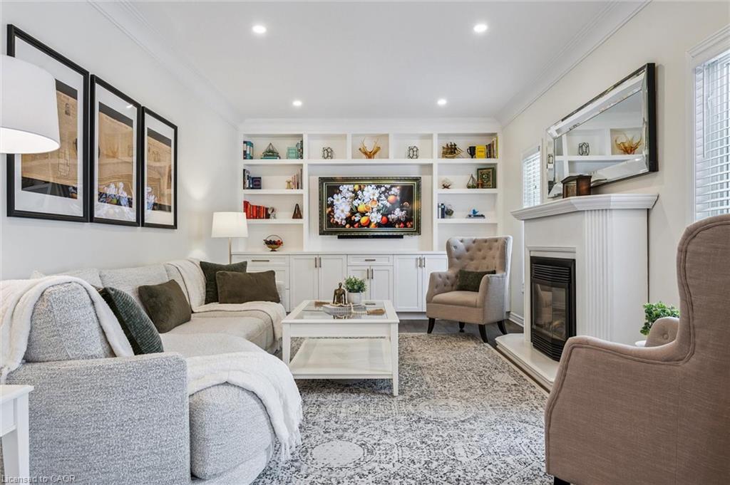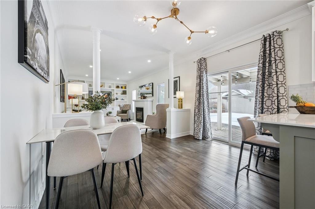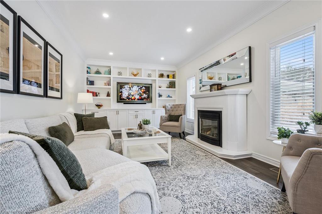 Stylishly Updated for Modern Living! Located in Guelphs sought-after south end, this beautifully upgraded home offers over 3,000 sqft of finished living space, including 3 bedrooms and 4 bathrooms perfect for todays busy family. With undeniable curb appeal, the home welcomes you with a charming covered porch and double-door entry into a bright, inviting foyer. The first floor boasts soaring 9-foot ceilings and hardwood floors, which continue throughout the second level. The formal dining room sets the tone for elegant entertaining, featuring full-height paneling, crown molding, and a striking contemporary chandelier.The heart of the home is the showstopping eat-in kitchen, complete with two-tone cabinetry, quartz countertops, stainless steel appliances, and a sunny breakfast area with walkout to the backyard. A cozy family room anchored by a gas fireplace and custom built-in bookshelves is the perfect space to unwind. Upstairs, rich hardwood flooring continues throughout, leading to the luxurious primary suite with a bay window, walk-in closet, and a spa-like 5-piece ensuite featuring a jetted Jacuzzi tub.The fully finished basement offers exceptional flexibility ideal for a home office, gym, playroom, or guest suite, complete with a full bathroom. Outside, the fully fenced yard is your private retreat, featuring an in-ground pool, mature landscaping, covered patio area, and an insulated pool house with hydro. Recent updates include a new pool liner, cover, heater, and equipment, as well as updated windows, furnace, AC, staircase, flooring, kitchen cabinetry, and much more! Located in a fantastic school district including St. Ignatius, Westminster Woods, St. Paul's, Sir Issac Brock, and Bishop Mac. The house is near parks, amenities, and the 401, this home truly has it all.