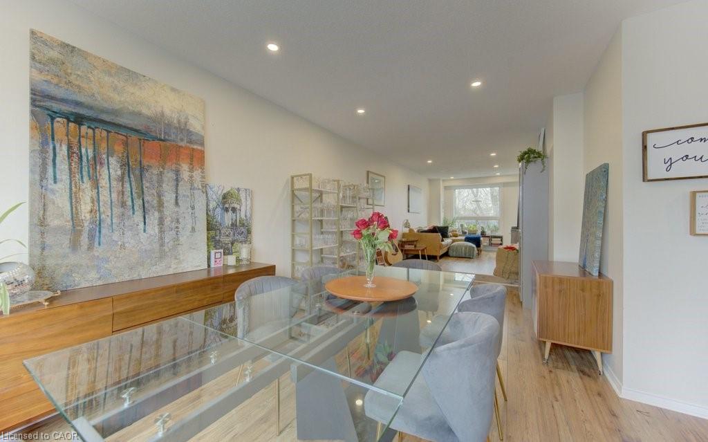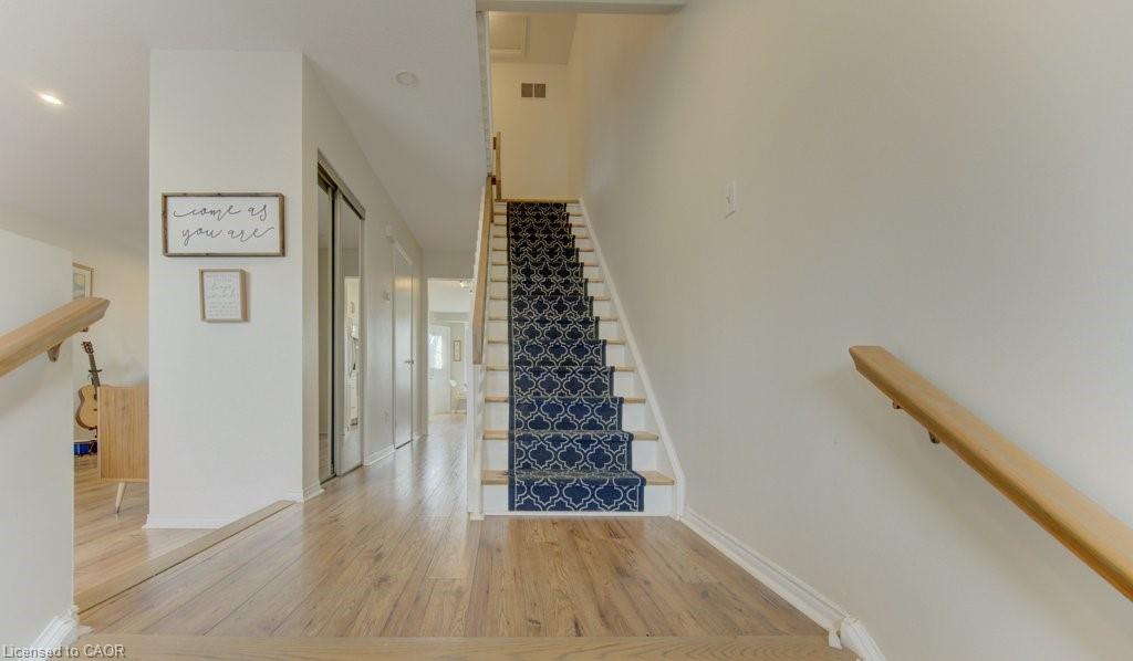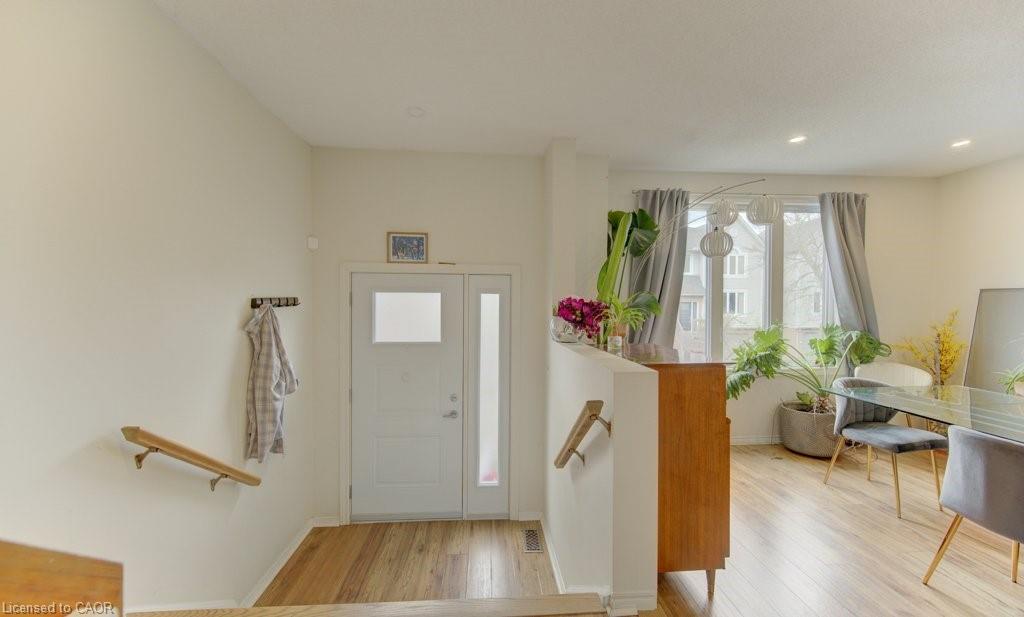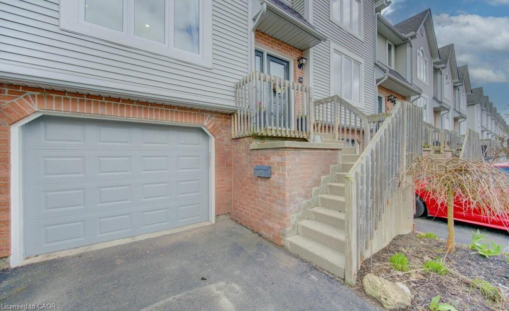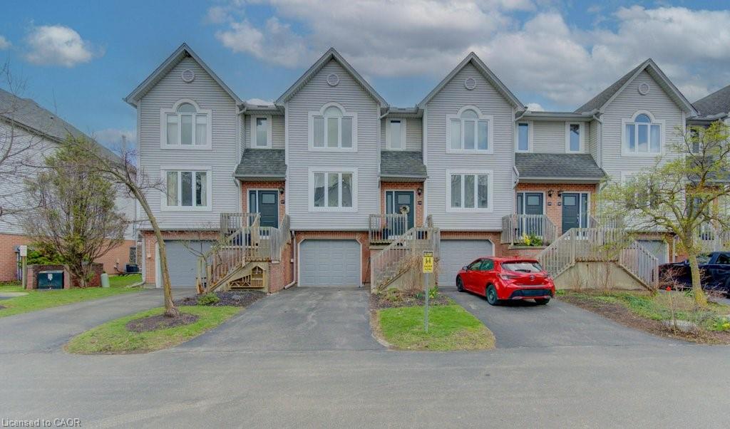 This beautifully updated townhouse blends modern finishes with an unbeatable location. Inside, you’ll find two exceptionally spacious bedrooms and a gorgeous 5-piece bathroom featuring a deep soaker tub, glass walk-in shower and double vanity. Solid-surface flooring runs throughout, creating a clean, contemporary feel. The redesigned kitchen is a standout, complete with quartz countertops and direct access to a private rear deck—perfect for morning coffee or summer evenings. The renovated lower level offers incredible flexibility, with a separate entrance, bright windows, and its own patio/BBQ area. Ideal as a third bedroom or a quiet home office. Additional highlights include an attached garage with automatic opener and convenient interior access. Set within a well-managed, predominantly owner-occupied condo community, this complex offers a quiet, established atmosphere with a mix of families, professionals, and academics. Step outside to enjoy the Laurel Creek Trail just behind the unit—perfect for walking and biking, with scenic routes leading directly into Uptown along a peaceful stream.