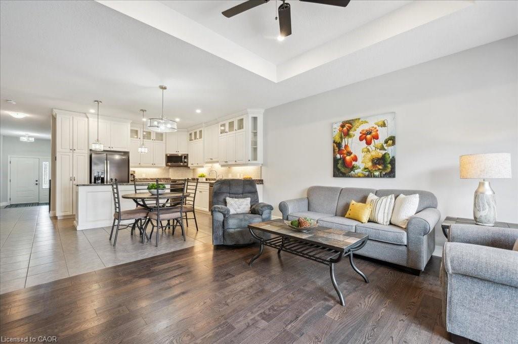**OPEN HOUSE SAT. MAR. 7 from 2-4pm** Welcome to 28 Bur Oak Drive - Bungalow townhouse with no condo fees! This lovely move-in ready townhouse offers a main floor primary bedroom, 2 car parking and is located close to shopping and amenities in Elmira. With 2,440 sq ft of total finished living space, this townhouse has 2+1 bedrooms and 3 bathrooms. Enter through the front foyer, past the front bedroom/den and the adjacent 4 piece bathroom and into the open concept kitchen and living room . The white kitchen has ample cupboard space, a large island and dinette, a great spot for your morning cup of coffee! The living room features a tray ceiling, hardwood floors and a gas fireplace. The primary bedroom has a tray ceiling, a walk-in closet and a 4 piece ensuite with shower and double sinks, no need to share your space! Also found on the main floor is the laundry room and access to the garage. Downstairs you will find an extra large rec room, an additional bedroom and a 3 piece bathroom. Have pets? This home has a pet washing station under the stairs! The backyard is a summer oasis! The fully fenced landscaped yard has a deck with pergola with built-in bench. This home is in a great location with easy access to shopping, HWY 85, and walking trails along the Lions Ring Trail.