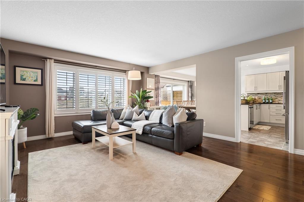 Tucked within a quiet, family-friendly court located in South Huron, Kitchener, this beautifully maintained two-storey home offers a well-balanced blend of comfort,space, and functionality. With 4 bedrooms and 4 bathrooms, the layout is thoughtfully designed for both everyday living and entertaining. The main floor features a bright, open-concept living area anchored by a cozy fireplace and large windows that invite in natural light. The adjoining kitchen is finished with classic cabinetry, stainless steel appliances, and a timeless backsplash, flowing seamlessly into a dedicated dining area, featuring an 8 feet patio door with walkout access to the backyard deck. A convenient two piece powder room and laundry room complete this level. Upstairs, the spacious primary bedroom offers a peaceful retreat with a walk-in closet space and a private five piece ensuite. Three additional bedrooms are well-sized and share a four piece bathroom with dual vanity, ideal for growing families. The fully finished basement with large lookout windows, extends the living space with a versatile recreation area, additional three piece bathroom, and room for a home office, gym, or media space. Outdoors, the backyard is designed for relaxation and gathering, featuring a two level deck, a covered gazebo lounge, and a fully fenced yard with green space for kids or pets. Just minutes from the scenic trails of Huron Natural area, the extensive RBJ Schlegel Park, an upcoming state-of-the-art indoor recreation facility, the Longo's Plaza, schools and everyday amenities. Altogether, this home is well-suited for families seeking an exceptionally maintained, move-in ready property in a sought-after community.