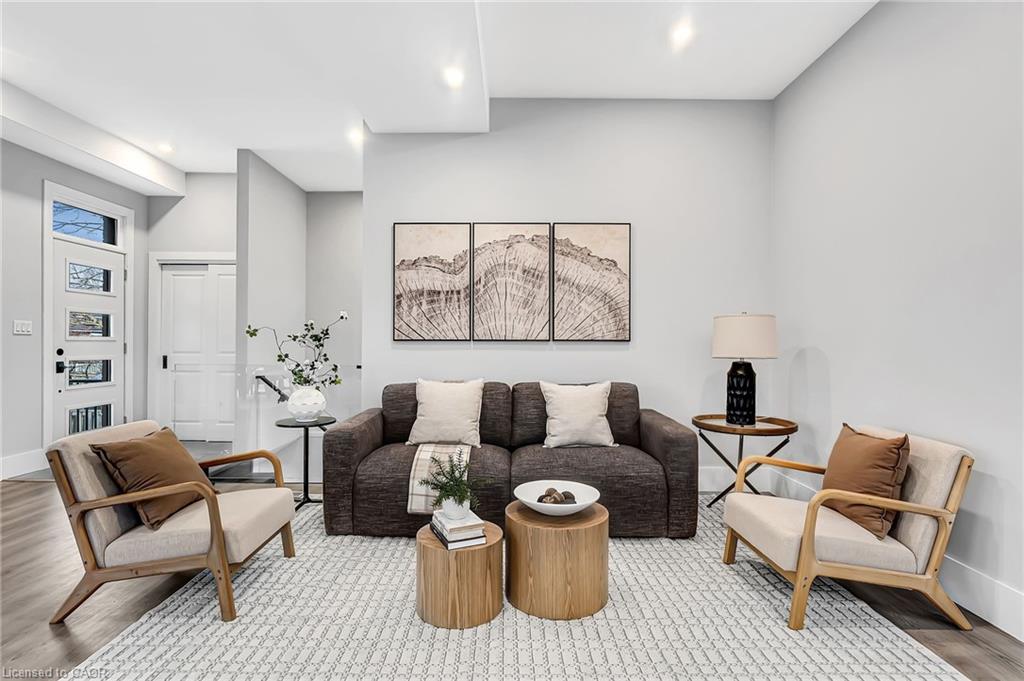 Experience modern luxury in one of historic downtown Guelph's most distinguished corridors with this newly built architectural residence. Thoughtfully designed, this 4-bedroom featuring has 4 full bathrooms plus a main-floor powder room, over 3,800 SF of total finished living space. The home delivers contemporary elegance in one of the most character-rich locations the city provides. A striking floating staircase with glass accents sets the tone upon entry, introducing an interior defined by clean lines and sophisticated finishes. The open-concept main level showcases a beautifully appointed chef's kitchen with a generous island, plenty of custom cabinet storage and a fully equipped butler's pantry complete with beverage fridge. This modern marvel creates a seamless environment for both everyday living and elevated entertaining. A dedicated home office provides a quiet, private workspace, while the upper level features spacious bedrooms and well-appointed bathrooms crafted for comfort and style. The finished basement extends the home's versatility, providing a layout that can be easily transformed into an in-law suite for multi-generational living or extended-stay guests. Completing this exceptional property is a rare detached 1-car garage-an invaluable asset in this sought-after downtown enclave. A residence of this calibre, in a location of such distinction, is a rare opportunity in Guelph's urban landscape.