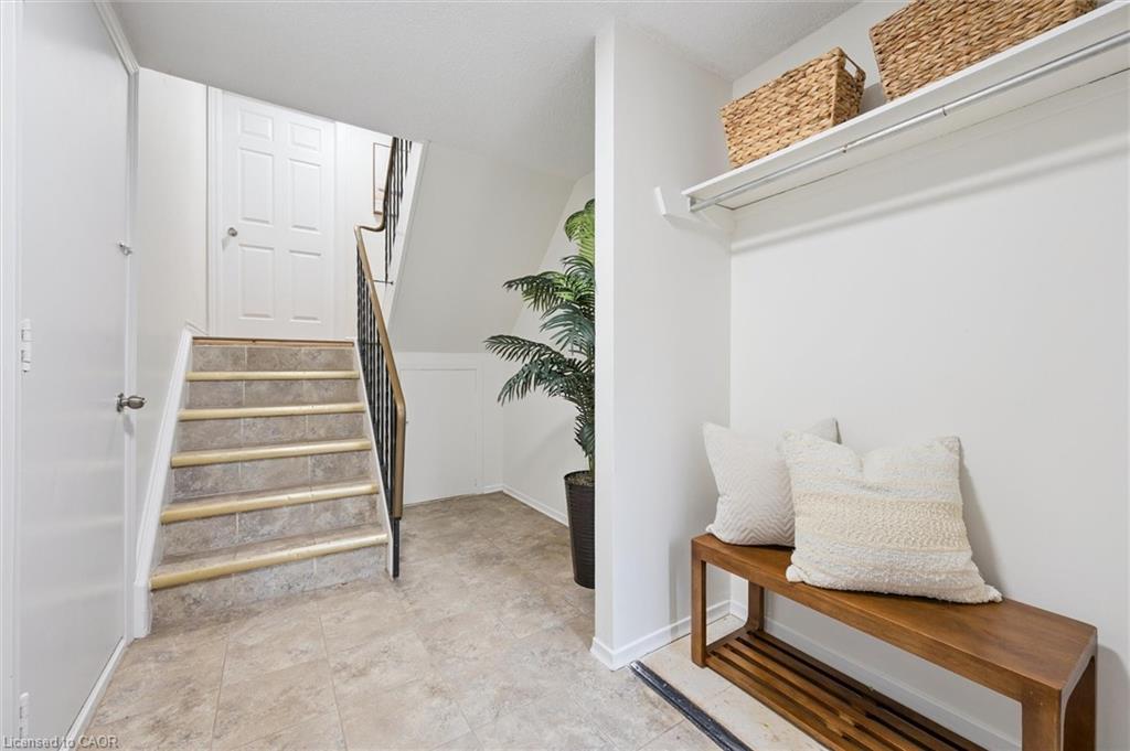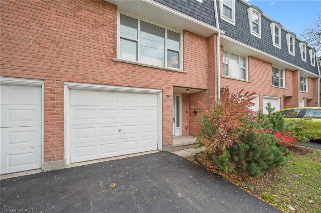 Welcome to unit #29 at 100 Bluevale St N in the convenient Bridgeport neighbourhood in Waterloo! This updated townhouse backs onto Green-space wtih thoughtful upgrades throughout. Walk into the light and welcoming foyer with access to the garage. Fresh paint, upgraded lighting, and updated flooring throughout. A bright and airy living room, with an oversized window floods the space with natural light. This design beautifully connects the living and dining areas, providing a flexible space that allows for various uses of space. The kitchen comes equipped with stainless steel appliances, white cabinetry with upgraded hardware and a picture window looking out onto your private yard. There is a 2 piece bath on this level in addition to yard access for ease of use. A large primary bedroom, complete with double closets offer ample storage. Off of the primary is a newly updated and stylish bathroom. Two additional bedrooms upstairs provide room to grow. Take comfort knowing the roof has been redone recently (2018) as well as a brand new driveway (2025) and the eaves and downspouts (2024). Conveniently located close to schools, shops, restaurants, the highway, the Zehrs and Bridgeport plazas, parks, 2 Universities, Conestoga College, and various transit options, this townhouse is an ideal match for those seeking convenience, style, and easy living.