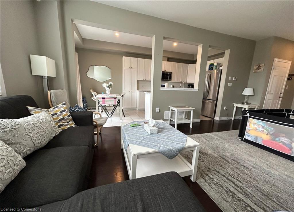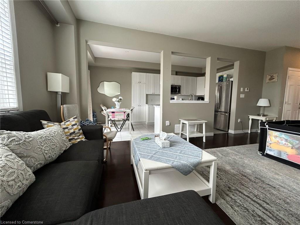 Welcome to this beautifully maintained and modern 3-bedroom, 2.5-bathroom townhome for lease, ideally located in South Cambridge near Dundas and Franklin. Available for long-term rental starting August 1st, this sun-drenched home offers an open-concept main floor with spacious living and dining areas, creating a bright and welcoming space ideal for small families. The heart of the home is a stunning white eat-in kitchen equipped with a premium 36-inch gas stove—a dream for any home chef. Step out onto your private deck and enjoy peaceful morning coffee or unwind with evening views of the surrounding cityscape. Upstairs, the master retreat impresses with elegant hardwood flooring, a large walk-in closet, and a luxurious private ensuite, while two additional bedrooms and a second full bathroom offer comfort and convenience for the whole family. Thoughtful details like large windows, soft grey finishes, central air conditioning, a water softener, and a drinking water filtration system elevate the home's appeal. A full-size garage, additional driveway parking, and guest parking complete the package. Located in a walkable, family-friendly neighborhood just steps from Zehrs, FreshCo, Dollarama, banks, restaurants, and schools—with the future state-of-the-art Cambridge Sports Hub and Recreation Centre only minutes away—this property offers both lifestyle and location. The basement is tenanted separately with a private entrance, ensuring privacy. Don’t miss out—schedule your private viewing today and make this exceptional home yours!