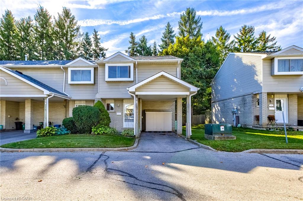 END UNIT: Located in a sought after North Galt neighborhood, this spacious end unit town-home is fully finished and perfect for the first time buyer or growing family alike. Featuring a bright, open concept design with 3 spacious bedrooms, 3 baths, 4 appliances, gas heat, c/air and water softener. The finished lower level offers a large rec room, bathroom, laundry and plenty of storage. Walk out the living room sliders to a private concrete/stone patio with a treed view. For parking, you’ll enjoy the asphalt drive allowing for 2 vehicles, with one being covered under the convenient carport. This great carpet free home is located in a family friendly neighborhood just minutes to schools, shopping, parks, YMCA and minutes from HWY 401.
