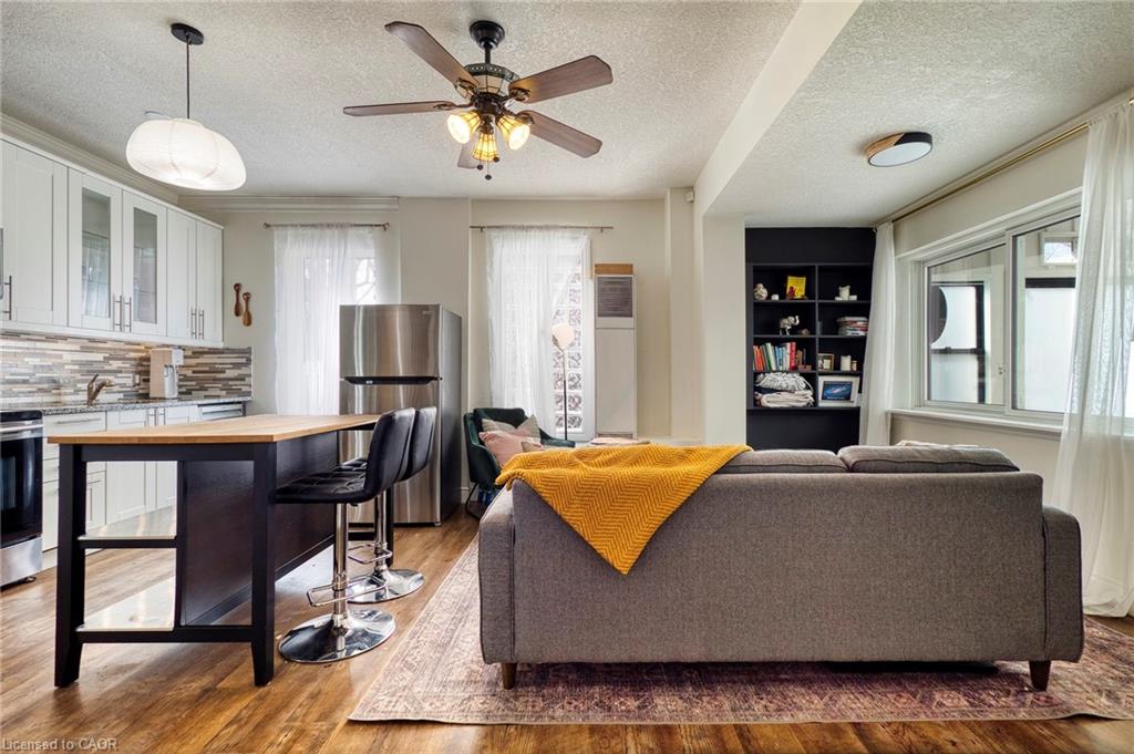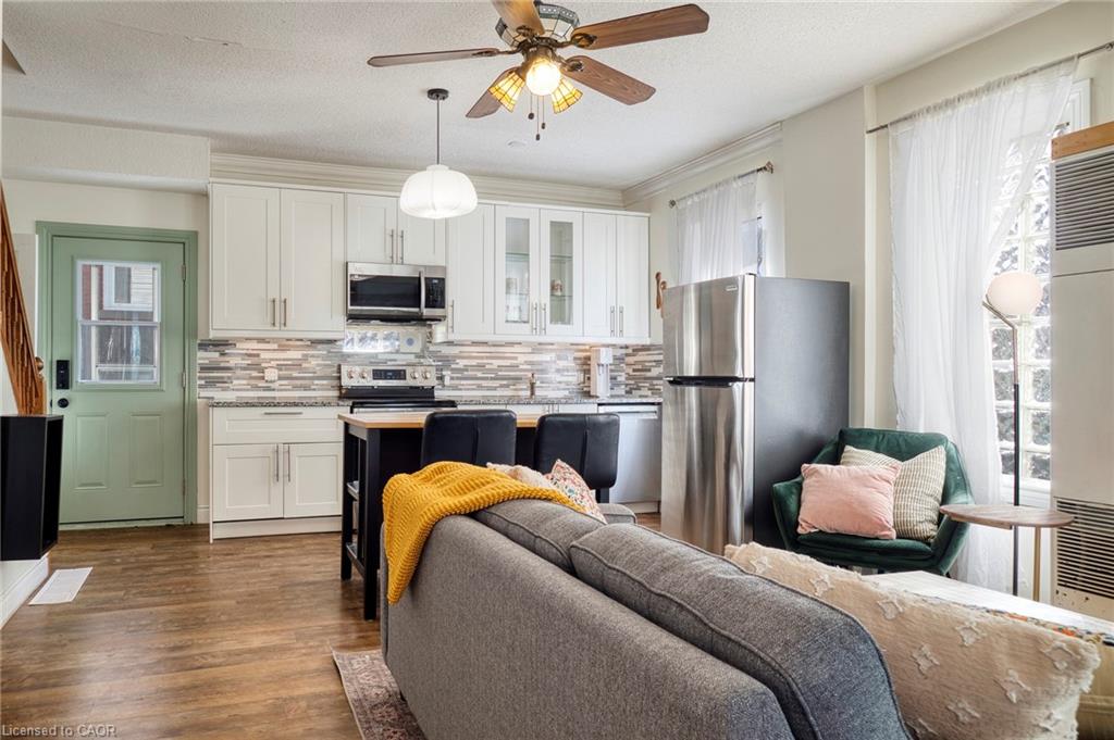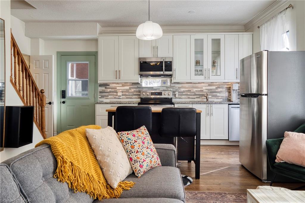 Finally, a creative and cozy 1-bedroom+den option offered in Midtown! This delightful semi-detached house brings you home to 4x parking spaces, old-growth mature trees, a private 2nd-floor suite, updated kitchen and flooring, finished basement den, and so much more. Near Google, Grand River Hospital, UW School of Pharmacy, McMaster School of Medicine, UW Velocity, and Communitech, this location has major employers and institutions within reach and the amenities to support these at your fingertips. Enjoy a collection of excellent cafes, restaurants, shops, fitness centres, pubs, and more within a few blocks. Just steps from King Street, and a few blocks from the LRT line, you will find this convenient location pays dividends to your everyday life. You won't find anything like this one, with an open-concept main floor, complete with an updated kitchen featuring stainless-steel appliance package, granite counters, kitchen island, and new kitchen cabinetry. Find serenity in the sunroom, which might just become your favourite spot to read a good book or setup your home office. The finished basement delivers on an additional den that could serve as additional hobby, fitness, or storage room, with insuite laundry available nearby. Upstairs, a spacious and bright primary bedroom suite offers dual closets and an ensuite 4-piece bath with shower-tub combination, upgraded vanity, and stylish fixtures. A private backyard deck is enclosed to allow for privacy when hosting friends or enjoying starry nights. Enjoy a space that is unique and manicured, in a location that is fit for urban life in Kitchener. Make it yours, today!