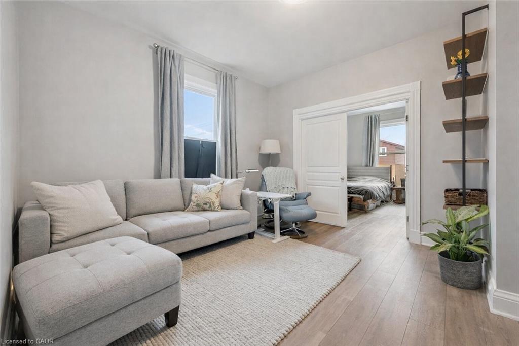 Beautifully renovated duplex set on rare dbl-deep lot W/detached 720sqft garage/shop offering exceptional flexibility, income potential & future upside! Solid red brick home has been updated & configured into 2 self-contained 1-bdrm units—W/potential to add a 3rd—making it an ideal opportunity for investors or homeowners looking to offset their mtg W/rental income. Completely renovated & generating $4,310/mth in rental income this property presents a strong turnkey opportunity for investors. Front porch leads into front unit where you’ll find an updated kitchen W/white cabinetry, backsplash & S/S appliances. This level is completed by a spacious bdrm. Upstairs an expansive loft-style living space offers incredible versatility, perfect for living room, office or creative studio—along with 4pc bath W/oversized vanity & shower/tub. The rear unit is a well-designed 1-bdrm suite on a single level W/renovated kitchen W/white cabinetry, backsplash & S/S appliances. Living space is warm & inviting W/lots of natural light while the bdrm offers generous proportions & storage. 4pc bath & in-suite laundry add everyday convenience. Adding even more value the property has sep entrance to partially finished bsmt where you’ll find a rec room/living area, bathroom & kitchen R/I presenting a strong opportunity for a potential 3rd 1-bdrm unit. Alternatively this space can be incorporated to expand the rear unit. Home has been renovated & updated throughout the yrs: roof 2023 & windows 2019. Set on rare dbl-deep lot W/rear laneway access, this property opens the door to future possibilities—whether it’s exploring a lot severance or adding an add'l dwelling unit (ADU) subject to city approvals. Detached 720sqft garage W/hydro is ideal for car enthusiasts, hobbyists or those needing serious workspace. Steps from Sunny Acres Park & short walk to Fixed Gear Brewing. Easy reach of downtown W/shops, restaurants, nightlife & GO Station. Property that works today &offers even more for tomorrow