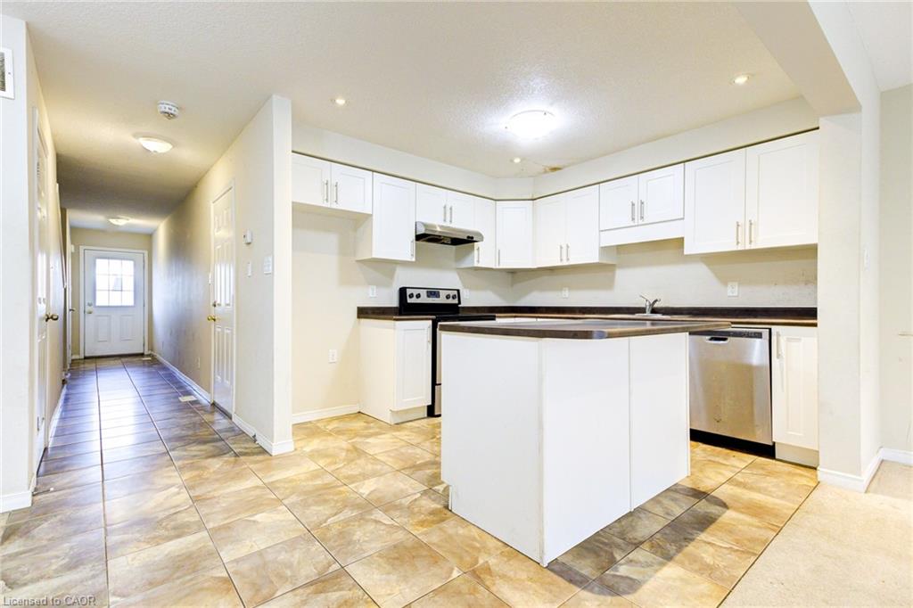 The main floor welcomes you with a bright, open-concept layout that seamlessly connects the spacious kitchen, dining area, and cozy living room. At the back of the home, large sliding glass doors lead to a private backyard oasis, complete with a patio—ideal for morning coffees or weekend entertaining. The kitchen is a chef’s delight, featuring abundant cabinetry & a generous island. Enjoy added convenience with a 2-piece powder room and direct garage access—including a rare feature of walk-through access from the garage to the backyard. Upstairs, you’ll find a generous primary suite with his and hers closets and a spacious 4-piece ensuite. Two additional bright and roomy bedrooms, a second 4-piece bathroom, and a large upper landing perfect for a home office or reading nook round out the second level. The unfinished basement offers endless potential for a future recreation room, home gym, or additional living space—ready for your personal touch. Located in the vibrant Grand River South community, this home is just steps away from scenic walking trails, the Grand River (perfect for canoeing), Chicopee Ski Hill, major highways (401 & 7), a nearby bus stop, and highly rated schools. Whether you're a growing family, first-time buyer, or someone looking to enjoy a carefree lifestyle, this townhome checks all the boxes. Don’t miss your chance to call this bright, spacious, and move-in-ready home yours!