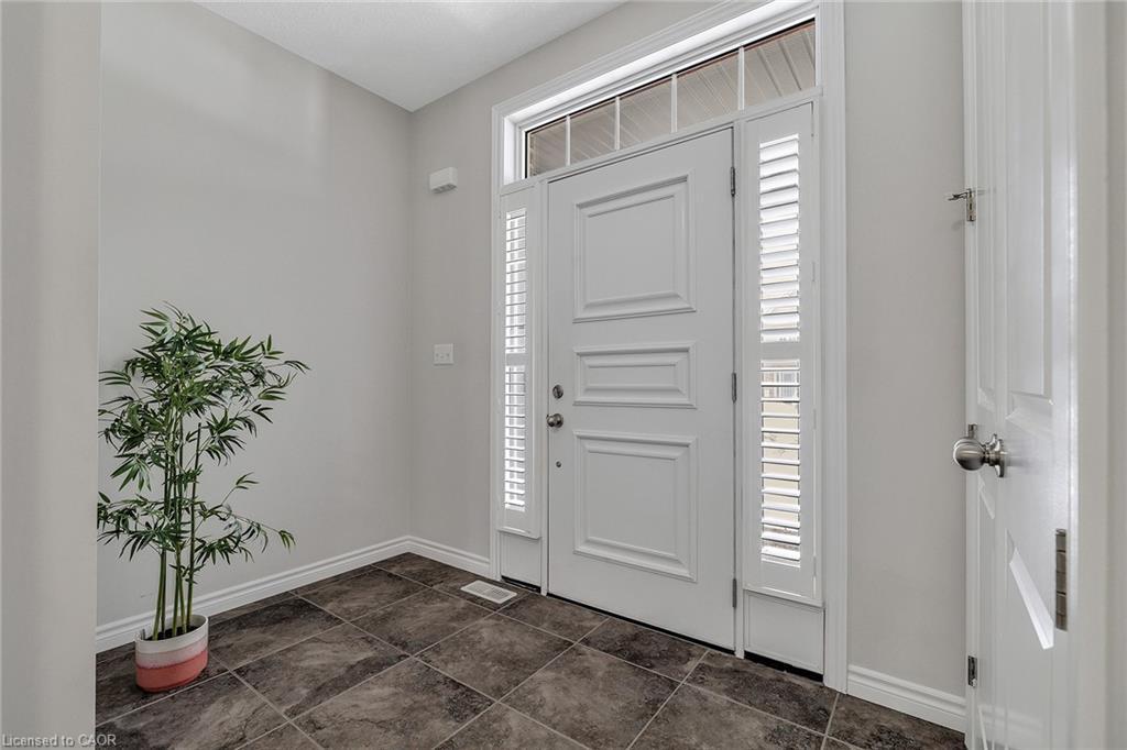 Welcome to 297 Thomas Slee Drive in Kitchener, a beautifully maintained 4-bedroom, 2.5-bathroom detached home built in 2016, located in the highly desirable Doon South / Pioneer Park neighbourhood. Just steps from Groh Public School and minutes to Highway 401, this home offers an ideal setting for families and commuters alike. Offering approximately 2,700 sq ft of above-grade living space, the bright main floor features spacious living areas filled with natural light and enhanced by 9-foot ceilings. Elegant California shutters throughout the main and second floor provide timeless style and privacy. An electric fireplace creates a warm focal point, perfect for relaxing evenings or entertaining guests. The kitchen includes white cabinetry, black granite countertops, under-cabinet lighting, and a generous walk-in pantry, providing both style and function. Upstairs, you’ll find four generously sized bedrooms and well-appointed bathrooms designed for comfortable family living. The unfinished basement offers excellent potential for additional finished living space or possible secondary use, subject to city approvals. Outside, the exposed concrete triple-wide driveway and matching backyard patio create impressive curb appeal and outdoor entertaining space. The fully fenced yard offers privacy and room to grow. Additional upgrades include an approximately five-year-old air conditioner and owned water heater and water softener, eliminating rental fees and ongoing monthly costs. Located near parks, trails, shopping, transit, and major commuter routes,