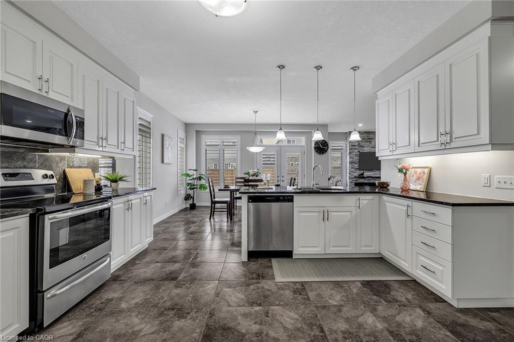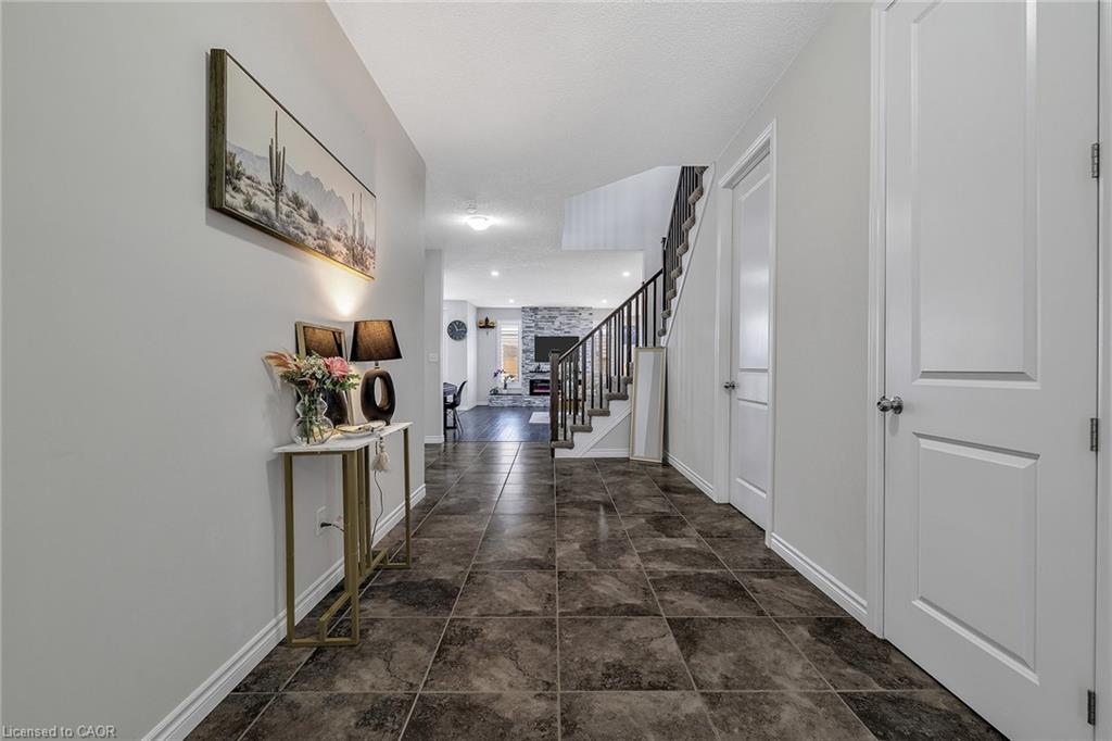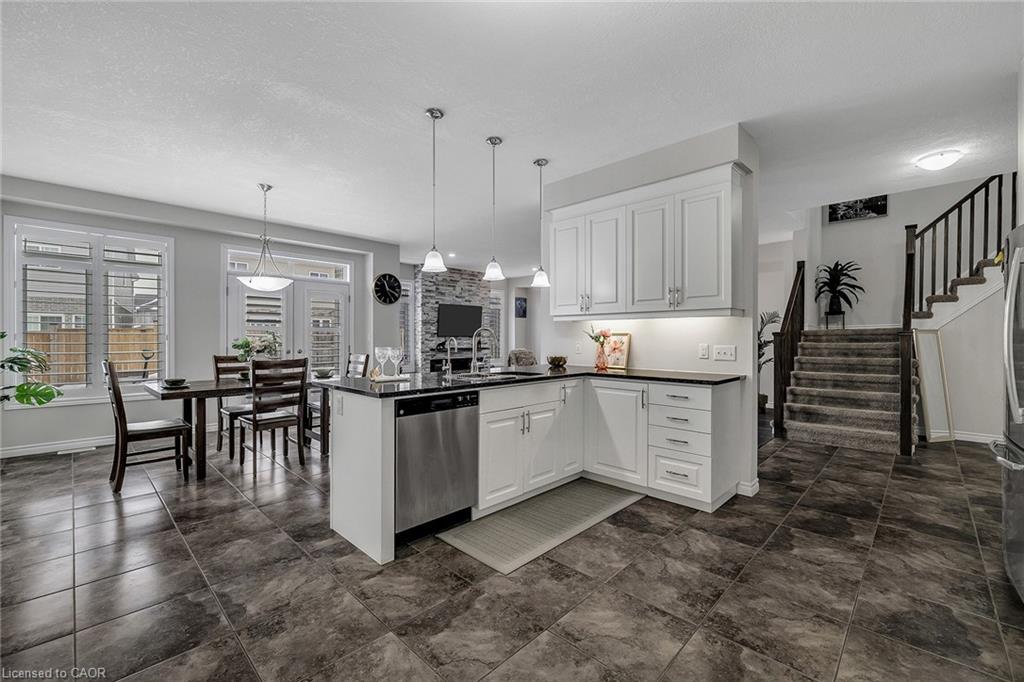 Welcome to 297 Thomas Slee Drive in Kitchener, a beautifully maintained 4-bedroom, 2.5-bathroom detached home built in 2016, located in the highly desirable Doon South / Pioneer Park neighbourhood. Just steps from Groh Public School and minutes to Highway 401, this home offers an ideal setting for families and commuters alike. Offering approximately 2,700 sq ft of above-grade living space, the bright main floor features spacious living areas filled with natural light and enhanced by 9-foot ceilings. Elegant California shutters throughout the main and second floor provide timeless style and privacy. An electric fireplace creates a warm focal point, perfect for relaxing evenings or entertaining guests. The kitchen includes white cabinetry, black granite countertops, under-cabinet lighting, and a generous walk-in pantry, providing both style and function. Upstairs, you’ll find four generously sized bedrooms and well-appointed bathrooms designed for comfortable family living. The unfinished basement offers excellent potential for additional finished living space or possible secondary use, subject to city approvals. Outside, the exposed concrete triple-wide driveway and matching backyard patio create impressive curb appeal and outdoor entertaining space. The fully fenced yard offers privacy and room to grow. Additional upgrades include an approximately five-year-old air conditioner and owned water heater and water softener, eliminating rental fees and ongoing monthly costs. Located near parks, trails, shopping, transit, and major commuter routes, this move-in-ready home provides the perfect balance of peaceful residential living and everyday convenience in one of Kitchener’s most established family communities.