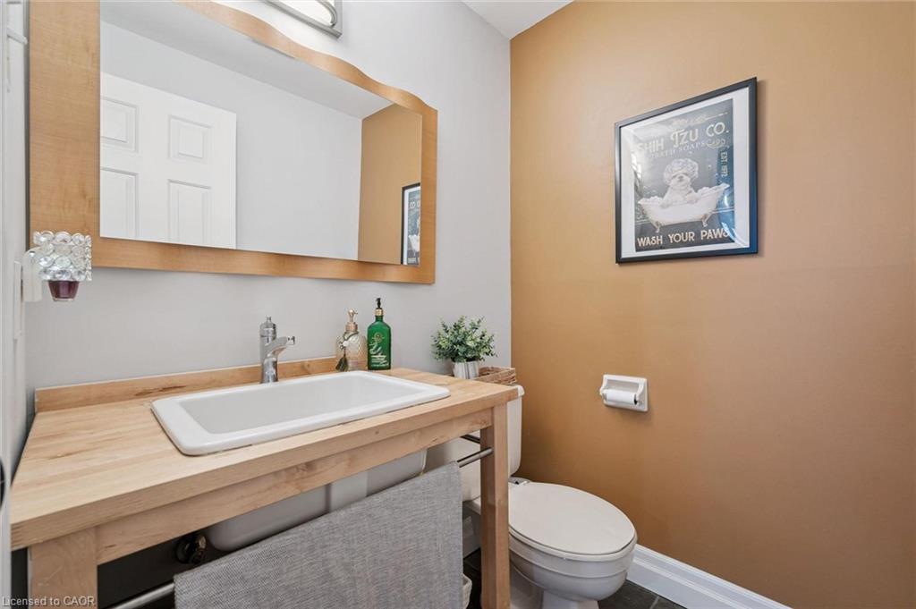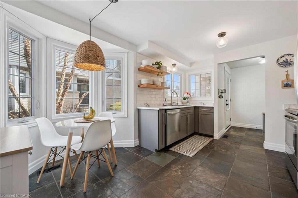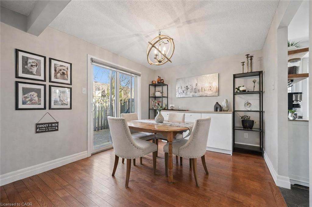 Beautifully renovated 2-bdrm, 3.5-bath townhome offering stylish move-in-ready living in highly desirable community W/in-ground pool & tennis/pickleball courts! From the moment you step inside you’ll notice warmth of hardwood flooring & thoughtful updates throughout. Eat-in kitchen W/sleek grey cabinetry, tile backsplash, S/S appliances & lots of counter space. Rustic wood display shelving adds character while the bay window nook creates perfect spot to enjoy morning coffee surrounded by natural light. Formal dining area offers elegant setting for entertaining W/stunning light fixture & sliding doors that lead to private backyard creating seamless indoor-outdoor flow. Living room W/gas fireplace & custom B/I shelving—perfect place to unwind at the end of the day. Convenient 2pc bath completes this level. Upstairs the primary bdrm offers hardwood, large windows & W/I closet. A versatile nook within the room offers perfect space for a dressing area, home office or reading corner. Ensuite is tastefully updated W/stylish vanity. 2nd bdrm offers custom B/Is & is complemented by 4pc bath W/large vanity & shower/tub. Finished lower level offers incredible versatility W/rec area highlighted by stylish shiplap fireplace & rustic wood mantel creating a warm elevated feel. Updated bathroom W/modern vanity & dedicated laundry room complete this level. Meticulously maintained & thoughtfully updated: furnace 2019, water softener 2021 & HWT 2023. Step outside to private fully fenced backyard W/large deck, mature trees & lots of space to relax & entertain. Residents of this well-maintained complex enjoy access to inground pool, tennis & pickleball courts & visitor parking—all the benefits without the maintenance. Nearby walking path connects to Royal Recreational Trail offering riverside pathways leading all the way to Guelph Lake. Short walk to Riverside Park, nearby golf course & amenities. Complete W/attached 1-car garage this is truly a turnkey opportunity—just move in & enjoy