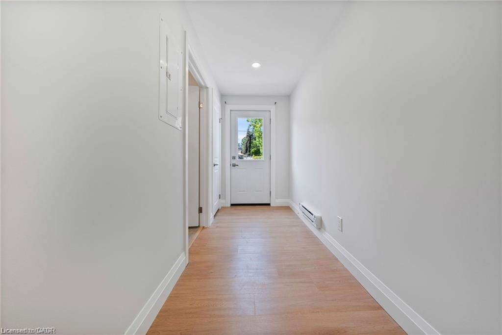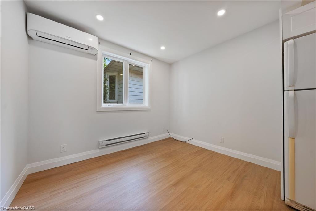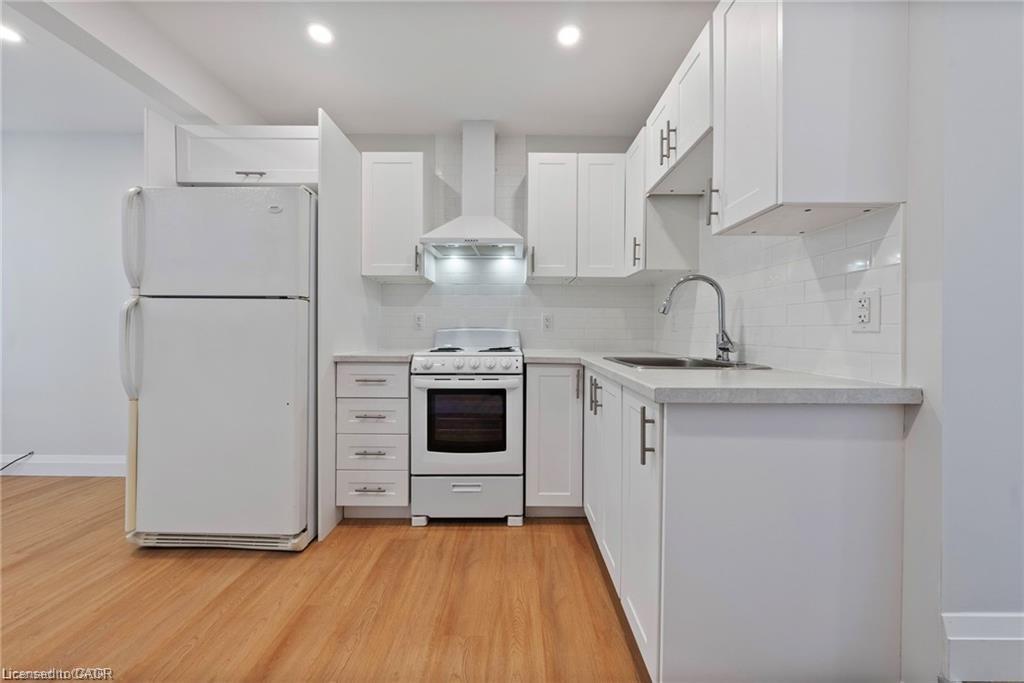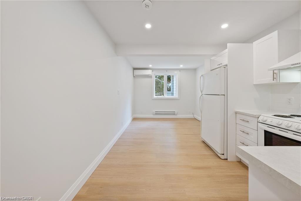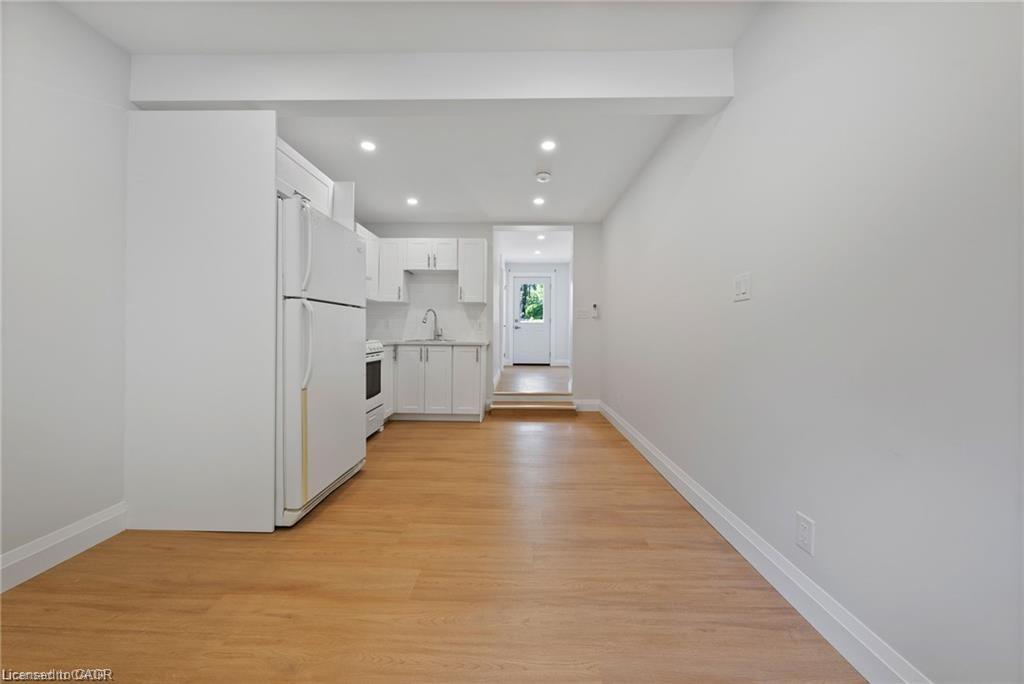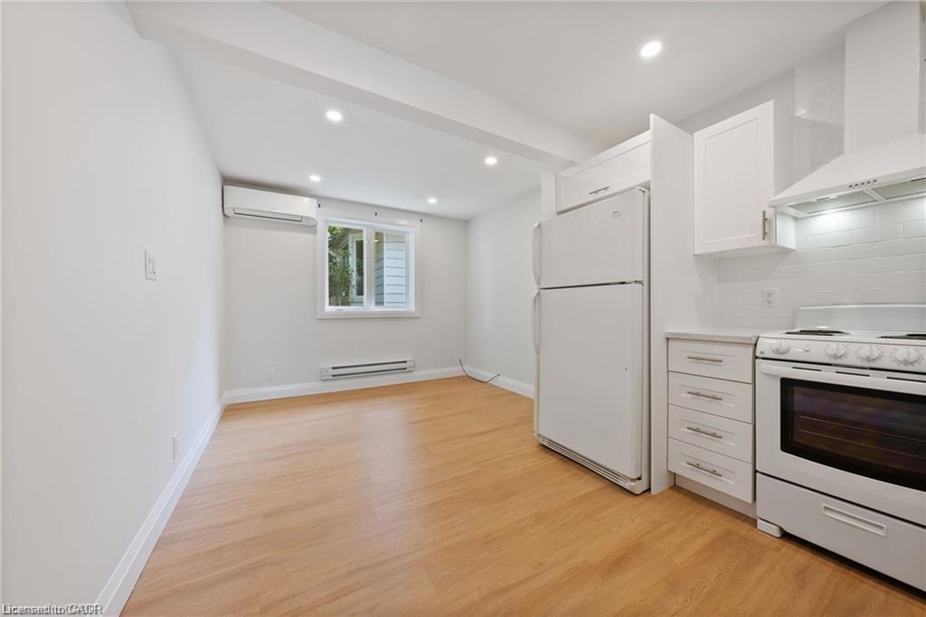 Fully renovated bachelor unit complete with full kitchen, 3pc tiled bathroom and in-suite laundry! Located at 132 Merner Avenue in Kitchener's desirable East Ward Neighborhood with a great walking score and steps to bike paths, bus routes, LTR stops, The Market, AUD, downtown Kitchener along with any amenity you may need. Separate entrance to the unit with it's own temperature controls, large window in main living space for natural light and fresh air, new floors, paint, trim, kitchen, bathroom and more. Book your showing today! *no parking*
