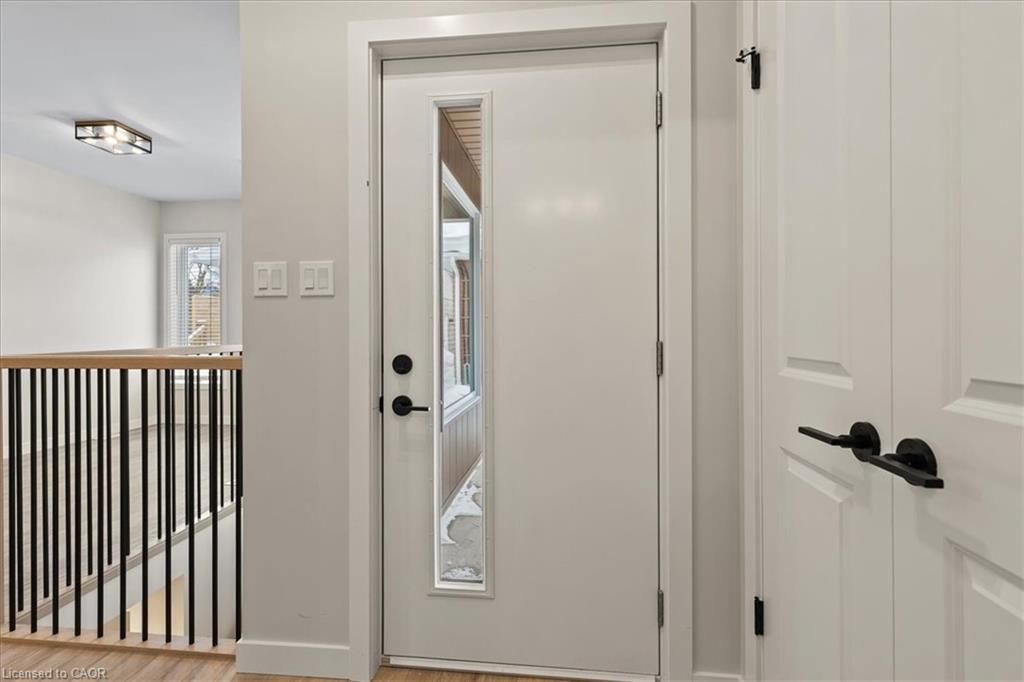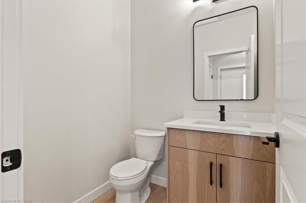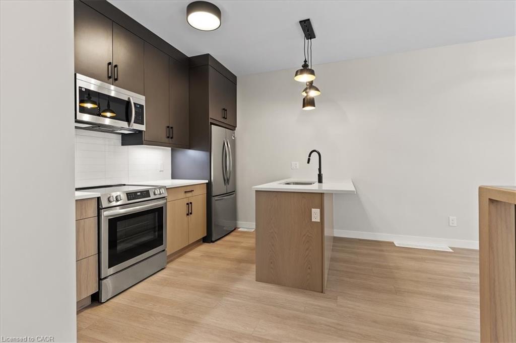 Beautiful rental! This energy efficient and modern compact unit offers luxury finishes comparable to a custom home. At 860 square feet and offering 2 bedrooms, 1.5 bathrooms, this unit comes with large main floor windows, 9' ceilings and a wide open layout making for a bright space. The living room, kitchen, and powder room all occupy the main floor. The two-tone kitchen is a combination of a white oak finish with satin grey floor to ceiling cabinets and soft close mechanisms along with quartz countertops throughout the kitchen and bathrooms. Brand new stainless steel kitchen appliances and stackable laundry washer and dryer. The black hardware contrasts the white trim and matches the black plumbing fixtures throughout. LVP flooring in the entire unit matches the oak staircase and iron spindles leading to the basement. Two bedrooms; one with built in drawers, a laundry, and a four-piece bathroom make up the lower level. Conveniently Country Hill location!