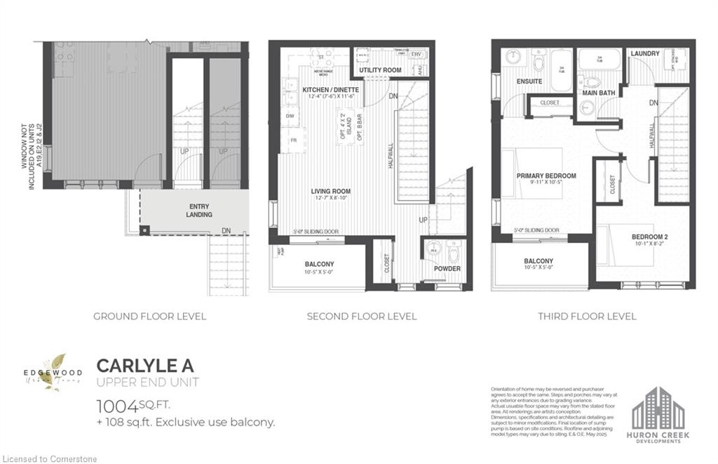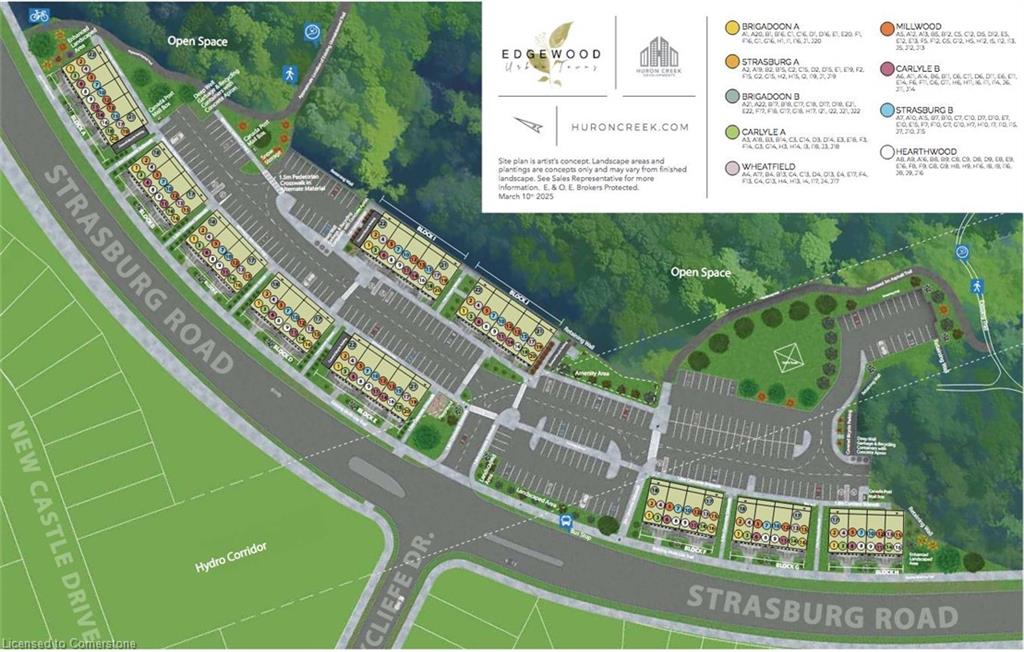 Welcome to Carlyle A - a stunning multi-level 2-bedroom, 2.5-bathroom stacked townhome-style condo, perfectly blending urban convenience with natural tranquility. Tucked into the serene Brigadoon Woods, this thoughtfully designed home offers a spacious open-concept layout ideal for both relaxing and entertaining. Step inside to discover generous-sized bedrooms, including a primary suite with ample closet space and a private bath. The balconies extend your living space outdoors, offering a peaceful retreat surrounded by mature trees and greenery. Enjoy the best of both worlds — nature at your doorstep and all amenities within easy reach. Located close to top-rated schools, shopping, dining, and with quick access to major highways, this home offers exceptional lifestyle and value. Whether you're a first-time buyer, downsizer, or investor, this beautifully maintained condo is a rare opportunity in a sought-after community. Don't miss it! PLEASE VISIT - (((Sales Centre is located at 35 Trillium Drive, Unit 1 in Huron Creek Developments building - lower level )))