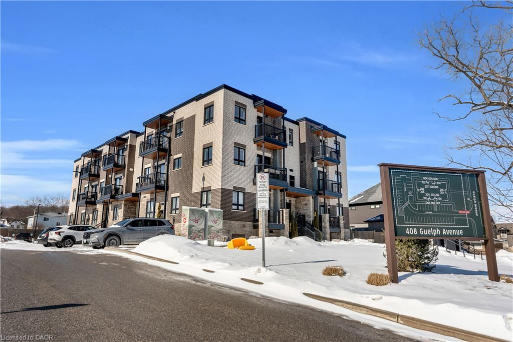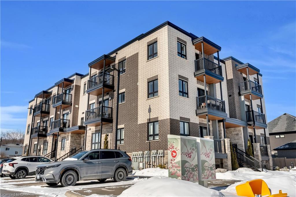 This beautifully appointed and modern 3 bedroom, 2 full bathroom stacked townhome features tasteful updates and comfortable living throughout! The first thing you will notice when you enter is the practical open concept layout with an enormous and upgraded chef-inspired kitchen with huge centre island and quartz countertops - ideal for casual meals or entertaining! The 9 foot ceilings, accent wall, updated light fixtures, pot lights and large windows make this a spacious and incredibly bright unit. The open concept layout seamlessly connects the living, dining, and kitchen spaces - perfect for everyday living, hosting guests or for a growing family. The best part is that the entire home is on one floor - no stairs to climb to go upstairs to your bedrooms! You will also notice how impeccably clean and incredibly maintained this home is. 2 parking spaces are included in addition to plenty of visitor's parking. This is a first-time homebuyer or commuters dream - only 5 minutes from Hwy 401! Walking distance to schools, parks, hiking trails.