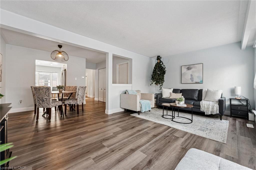 Tucked away in one of Guelph's best-kept secrets, this charming townhouse complex offers the perfect blend of convenience and community. Surrounded by mature greenery and close to all amenities, it truly feels like a little neighbourhood of its own. Welcome to this beautifully maintained end-unit townhouse, where thoughtful updates and pride of ownership shine throughout. The main floor has been fully updated and features a lovely modern kitchen with newer appliances, stylish new flooring, and contemporary light fixtures that create a bright and inviting atmosphere. Upstairs, you'll find three generously sized bedrooms, offering plenty of space for family, guests, or a home office. The finished recreation room in the basement provides additional living space - perfect for movie nights, a playroom, or a cozy retreat. Step outside to your private, fully fenced back patio, ideal for summer barbecues, morning coffee, or simply unwinding at the end of the day. Lovingly cared for and move-in ready, this home is waiting for its next owners to settle in and make it their own. A rare opportunity to enjoy low-maintenance living in a wonderful community you'll be proud to call home.