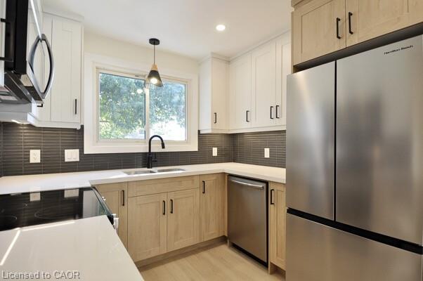 Scandinavian style Backsplit is ready for your next stage in life. Located is East Galt this home has a condo inspired feel but with land to enjoy. With 3 bed 2 bath and countless upgrades. Custom two tone kitchen with quartz countertops undermount led lighting , 4 new SS appliances. New doors paint and trim. High end vinyl flooring throughout. Bright Clean basement with new 3 piece bathroom and Wet bar to enjoy. Parking for three and newly sided shed.