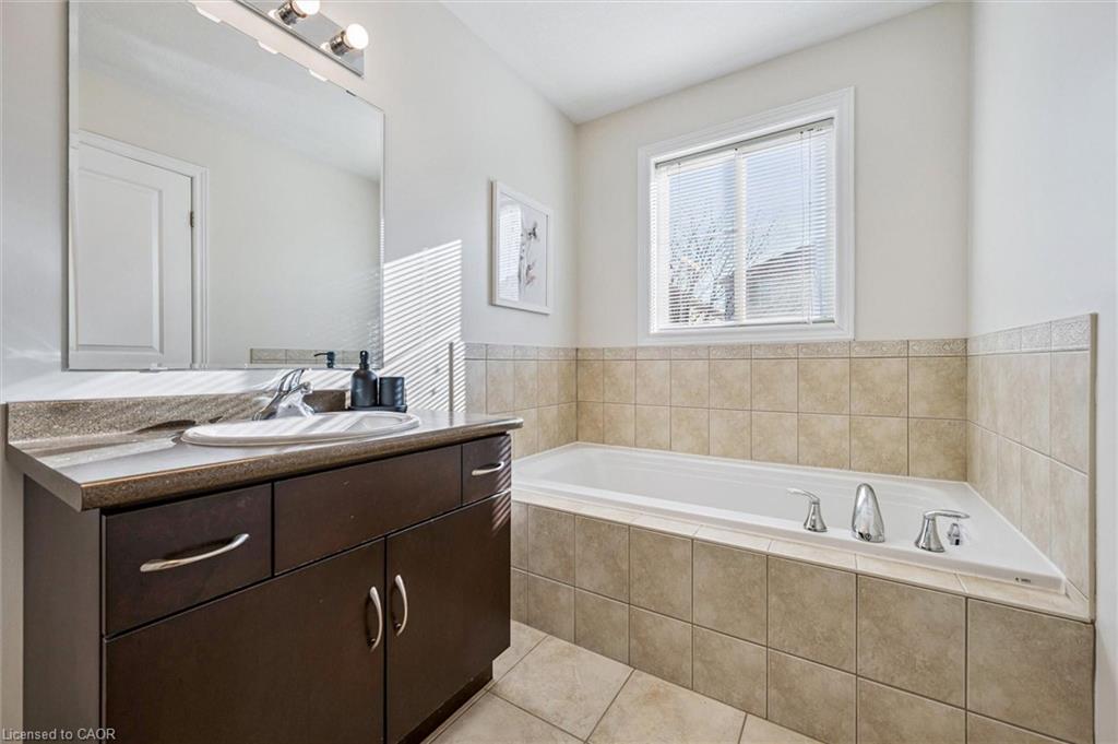 Welcome to 30 Vipond St, spacious 3-bdrm, 2.2-bathroom semi-detached home situated in quiet family-friendly neighbourhood! Home features attractive red brick exterior, long driveway W/parking for 2 cars & attached 1-car garage. Upon entering you're welcomed by dining room W/large window creating the perfect setting for family dinners & hosting guests. Toward the back of the home is spacious living room W/large window overlooking the backyard. Eat-in kitchen features dark cabinetry, tiled backsplash & breakfast bar for add'l prep space. Large dinette area offers sliding doors leading to 2-tier back deck creating great indoor-outdoor flow. A wall cut-out btwn the dinette & living room enhances the open feel of the space. 2pc bath completes main level. Upstairs spacious primary bdrm W/large window, dbl closet plus a W/I closet. Ensuite W/sep shower & deep soaker tub. There are 2 other bdrms W/dbl closets, one has a beautiful arched window! 4pc main bath W/large vanity provides ample storage & counter space. 2nd-floor laundry for added convenience. Finished bsmt W/rec room, oversized tile flooring & 2 windows that bring in natural light. 2pc bath & R/I for a wet bar are also located on this level. The space can easily function as 4th bdrm, playroom, office, gym or media room depending on your needs. Outside enjoy the 2-tier deck perfect for BBQs, dining or relaxing while watching kids & pets play in the fully fenced yard. An added bonus is the solar panel system installed on the home which generates approx. $9,000/yr providing excellent value while supporting sustainable energy. Just around the corner from Summit Ridge Park & trail network throughout the neighbourhood that connects to Holy Trinity Catholic School & Ken Danby PS. Area offers lots of trails & parks ideal for dog owners & nature lovers. Short drive to groceries, restaurants, fitness & amenities. Convenient back road access to 401 allows commuters to skip much of the city traffic for a more peaceful drive