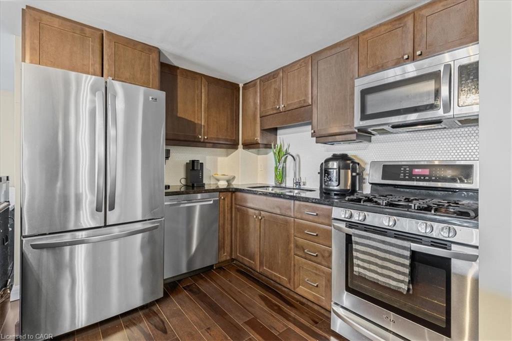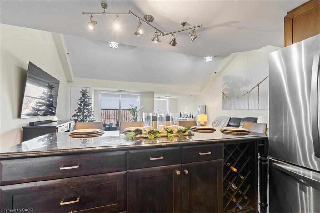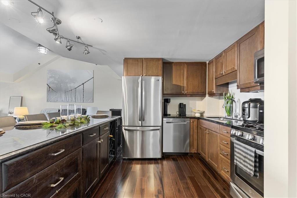 Welcome to unit 301 at The Summit! A stunning, bright, very clean & spacious 2 Bedroom, 2 Bath, luxury loft style Condo with over 1,100 sqft of living space in a very well kept, pet friendly building, minutes away from all conveniences in the highly sought after Hespeler neighbourhood. Featuring a lovely open concept layout, with vaulted ceilings in the living area, a patio door to a West facing balcony that allows much natural light to flood the living space. Newer neutral paint. The kitchen has granite counters, maple cabinets and stainless steel appliances including the gas stove. Also offering a walk in closet in the master bedroom, luxury pebble floor shower with jets and rainfall showerhead, in-suite laundry, exclusive large & secure storage locker, and a designated parking spot. Additional parking available. Building amenities include: Elevator, well equipped gym, party room with kitchen, common BBQ area and visitor parking! Located just minutes from the 401, close to schools, all amenities, a dog park, walking trails and the wonderful downtown Hespeler Village on the river. Don't miss out on this beautiful condo, book your showing today!