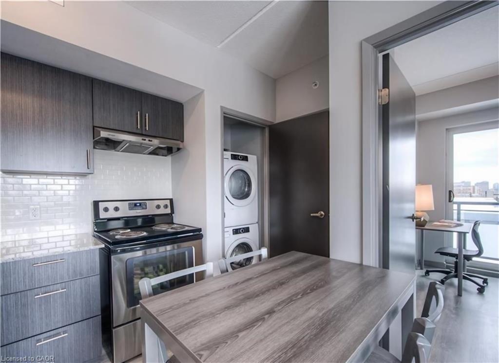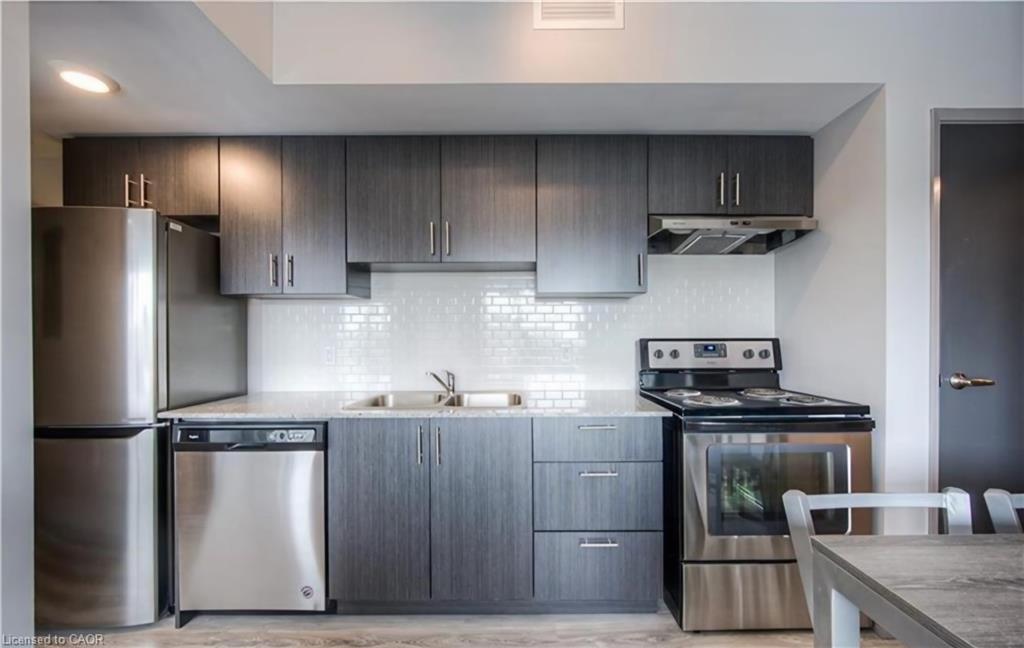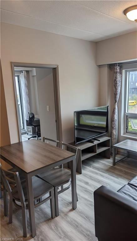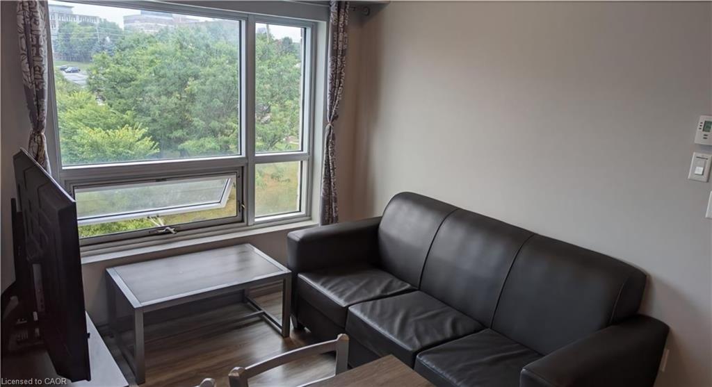 3rd floor Corner unit with balcony, fully furnished 1 bedroom + 1 den(currently used as second bedroom) and 1 bathroom. This condo is across the road from WLU's Lazaridis School of Business & Economics ~ walk to Wilfred Laurier, U of Waterloo, shopping, restaurants & transit stops. Newer unit with modern finishes, stainless steel appliances, granite countertops, in-suite laundry, laminate flooring and a 4pc bathroom. Unit comes complete with dishwasher, fridge, stove, stackable in-suite washer & dryer, 2 double bed frames, 2 mattresses, 1 nightstand, 2 desks, 2 chairs, 1 sofa, 1 coffee table, 1 media unit, 1 50" TV, 1 dining table, 4 chairs. The buildings at 275 Larch will include a Games Room, Theatre Room, Business Centre, Yoga Room & Fitness Room. Rent INCLUDES water, gas/heat, central air, & high-speed WiFi. Street parking or rent a spot underground for a reasonable cost from someone in the building.
