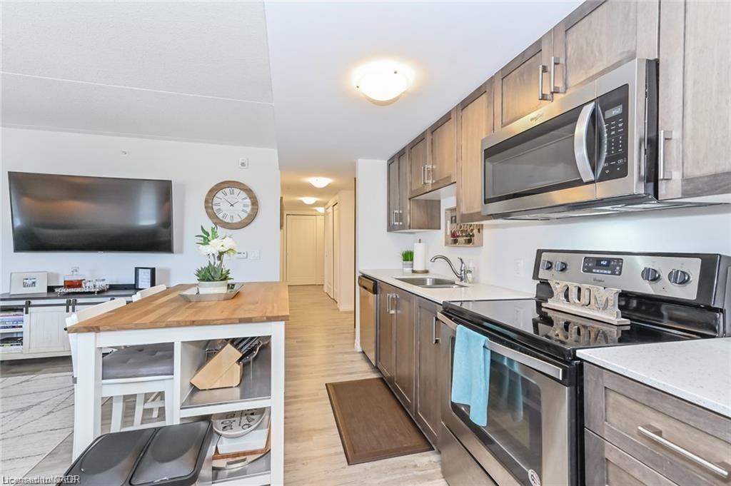 This Absolutely Beautiful Upgraded 3Bed, 2Bath Corner Unit Condo Is Sure To Impress! Sun-Filled Open Concept Floor Plan W/ laminate throughout. Modern Spacious Kitchen W'custom Pantry, Quartz Counters & S/S Appliances. Generous Sized Main Living Space Offers W/O To Large Wrap Around balcony. Master Retreat Boasts Double Closet & Modern 3Pc Ensuite. Spacious 4Pc Bath W'quartz Counter & Shower/Tub Combo. Fantastic Amenities; Gym, Party Room & Kids Park. 1 Locker & 1 Parking.