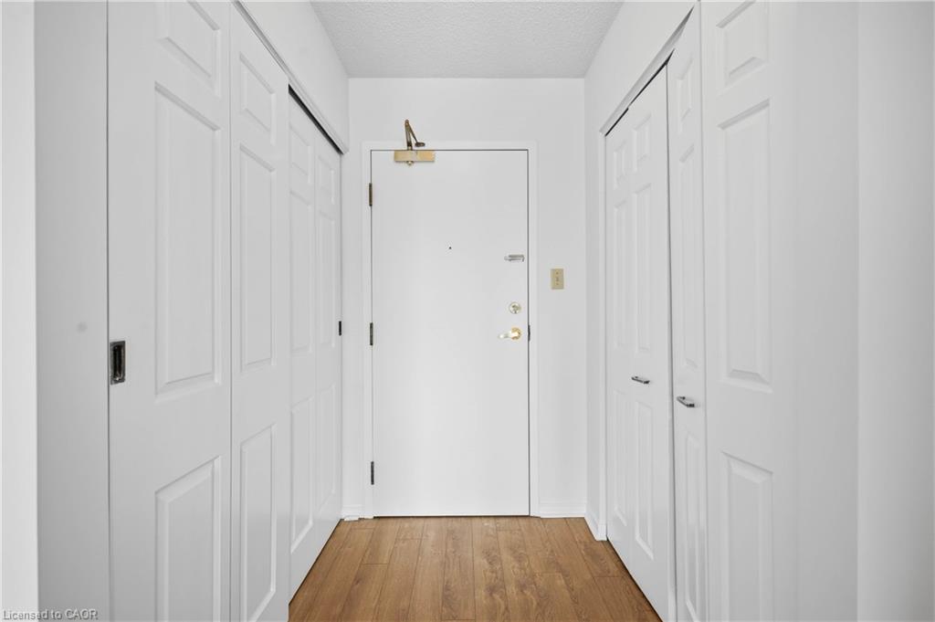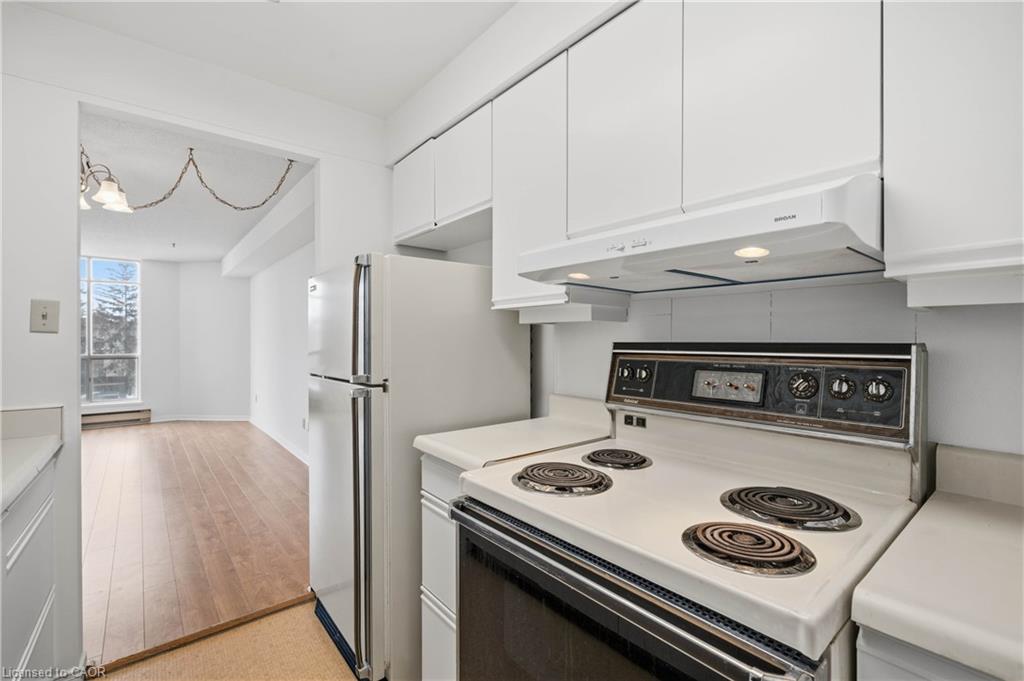 IDEAL FOR DOWN-SIZERS or FIRST-TIME BUYERS: Welcome to Eastwood Community Condos — a non-age-restricted, non-smoking condominium offering exceptional value with ALL utilities included in the condo fees. This bright, freshly painted, CARPET-FREE 1-BEDROOM home features IN-SUITE LAUNDRY and a PRIVATE SCREENED-IN BALCONY — perfect for enjoying fresh air without bugs. Natural light fills the space throughout the day, creating a warm and inviting atmosphere. Includes 1 unassigned surface PARKING space plus a same-floor LOCKER for convenient extra storage, with ample visitor parking available. Enjoy an impressive array of amenities including party rooms, bowling lanes, shuffleboard, billiards, a games room, multiple gathering areas, a woodworking shop, an exercise room, and a large outdoor patio with seating & BBQ space. Condo fees are just $642/month and include heat, air conditioning, electricity & water along with lawn care, snow removal, garbage and recycling — an outstanding value in this amenity-rich building. Ideally located near Rockway Gardens and Rockway Golf Course, with easy transit and quick access to Fairview Park Mall, The Auditorium, Downtown Kitchener, Hwy 401, and more. Perfect for active, social living—this condo truly has it all!