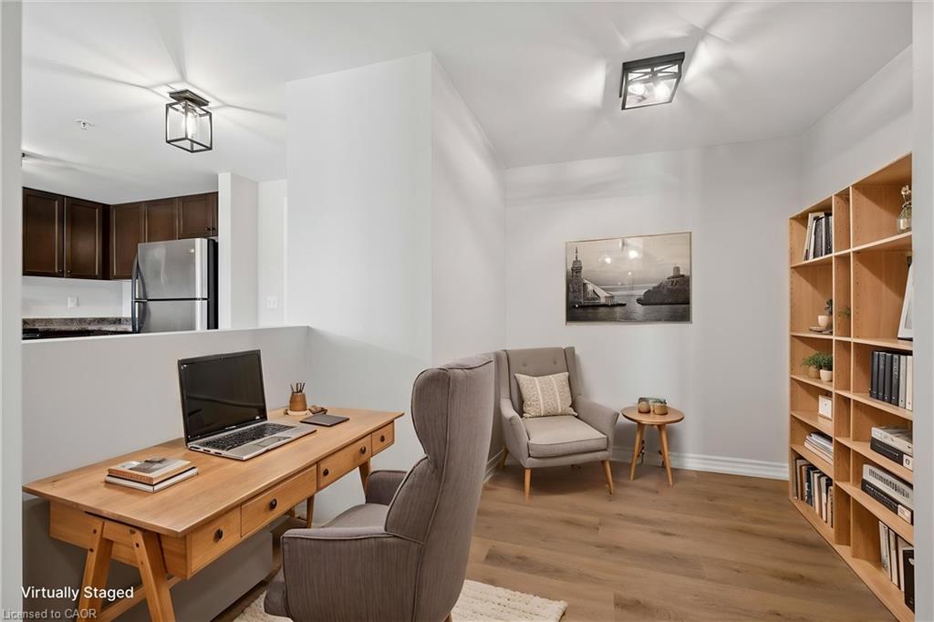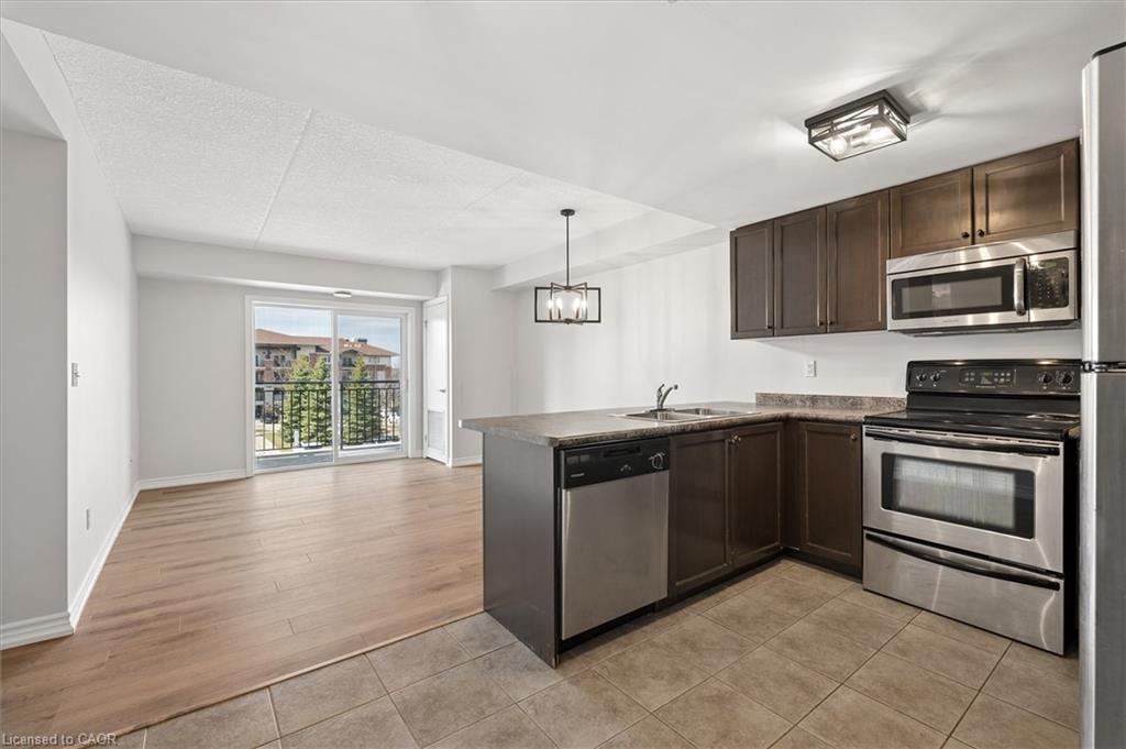Welcome to this beautifully updated 2-bedroom, 1-bath condo with a versatile den, ideally located on the third floor in one of Guelph’s most convenient and sought-after areas. Overlooking a peaceful park, this bright and freshly painted unit features new Siena oak flooring throughout the main living areas and bedrooms, complete with sound-reducing underlayment, along with stylish new light fixtures, a new kitchen sink, and an updated toilet. The functional layout offers comfortable living with added space for a home office or flex area. Enjoy the ease of one owned parking spot and access to a well-appointed amenity building—perfect for hosting gatherings. Just minutes to the 401, this is a commuter’s dream, while also being within walking distance to incredible amenities including Longo’s, Galaxy Cinemas, restaurants, the library, great schools, trails, GoodLife Fitness, and a Pilates studio. Ideal for first-time buyers or down-sizers, with affordable condo fees—this is an opportunity you won’t want to miss!