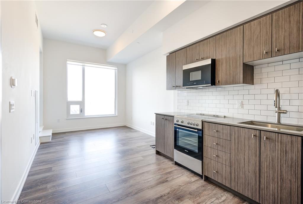Now available for lease, this beautifully designed 1-bedroom condo is located on the 3rd floor of Union Towers at Station Park in the heart of downtown Kitchener. Situated at the perfect elevation, it offers scenic views of the city while still providing convenient stair access. With 560 square feet of thoughtfully planned open-concept living space, the unit integrates the kitchen, living, and dining areas seamlessly—brightened by southern exposure and spectacular sunset views. Unique to the lower podium levels, this unit also boasts elevated ceilings for a more spacious feel.