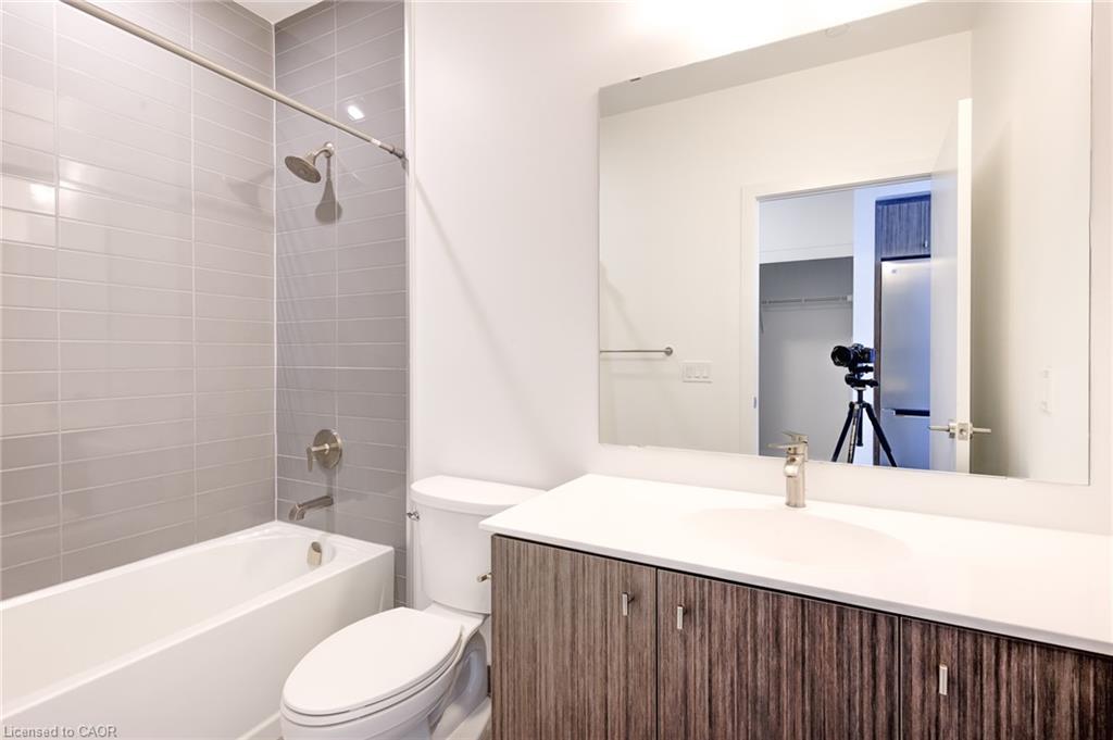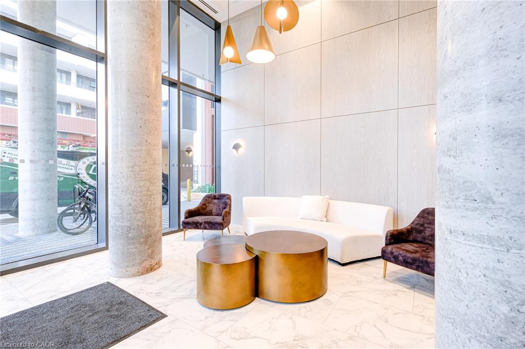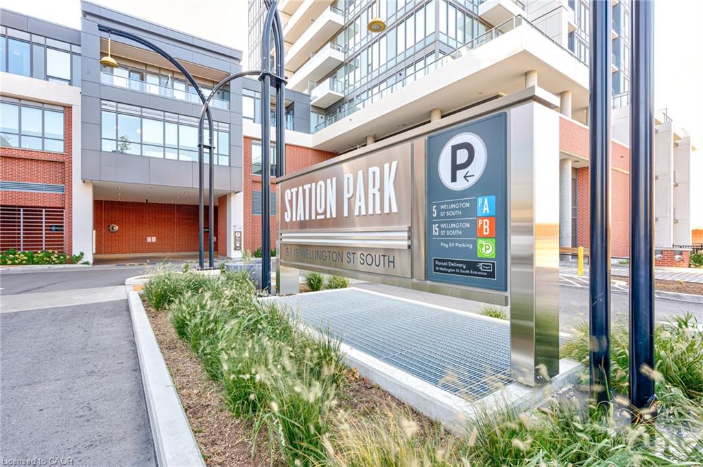This stunning 1-bedroom condo on the 3rd floor of Union Towers at Station Park in downtown Kitchener offers a stylish and modern living experience. Being on the 3rd floor, you're high enough for amazing views of Kitchener, and steps away from amenity access! Spanning 560 square feet, the open-concept layout seamlessly blends living, dining, and kitchen areas, and enhanced by ample natural light due to the southern exposure and amazing sunset views. An added bonus - only offered in the podium units on the first couple of floors, you get the extended ceiling height! This condo features a 4-piece bathroom and convenient in-suite laundry for ultimate comfort. Residents can indulge in a wealth of luxury amenities, including a two-lane bowling alley with a lounge, a premier lounge area complete with a bar and games, and a private hydropool swim spa and hot tub. Fitness enthusiasts will appreciate the well-equipped gym, yoga/Pilates studio, and Peloton studio, while pet owners can pamper their furry friends at the dog washing station and pet spa. The landscaped outdoor terrace invites relaxation with cabana seating and BBQs, and a concierge desk ensures resident support. For special occasions, a private dining room with kitchen appliances, dining table, and lounge chairs awaits. This condo truly embodies a vibrant urban lifestyle.