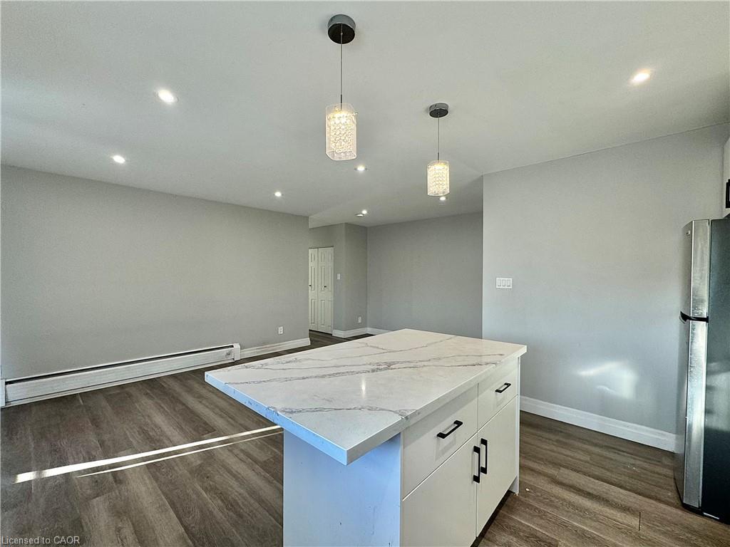 Updated two bedroom apartment available in a convenient Waterloo location. Welcome to 413 Hazel Street, a professionally managed building ideally situated within walking distance to Wilfrid Laurier University and surrounded by nearby grocery stores, restaurants, and everyday amenities. This well designed unit offers a functional layout that makes great use of the space while maintaining a comfortable and open feel. The kitchen is finished with quartz countertops, a modern backsplash, contemporary light fixtures, and stainless steel appliances including a dishwasher. The living area is bright and spacious, providing a comfortable setting to relax or spend time with friends. Both bedrooms feature large windows that allow for plenty of natural light along with generous closet space for storage. A clean and well maintained four piece bathroom completes the unit.