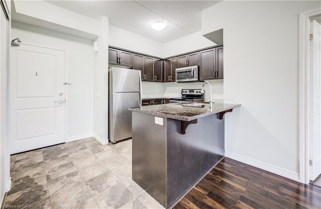 A MODERN RETREAT IN GUELPH’S SOUGHT-AFTER SOUTH END. This condo blends everyday convenience with modern style and peaceful, natural surroundings. Bright, spacious, and thoughtfully designed, this 2-bedroom, 2-bathroom home is the perfect opportunity for first-time buyers, downsizers, or savvy investors seeking low-maintenance living in a prime location. Step inside and immediately feel at home in the open, sunlit layout, completely carpet-free and freshly painted in calm, contemporary tones. The well-planned floor plan offers a comfortable balance of connection and privacy. The stylish kitchen features sleek granite countertops and flows seamlessly into the living area—ideal for hosting friends, relaxing with a movie, or unwinding after a long day. Each bedroom is generously sized and has direct access—or just steps—to its own full bathroom, making this an excellent setup for roommates, guests, or tenants. When you’re craving a moment of quiet, step out onto your private balcony and take in the peaceful forest views. No parking lots, no buildings—just a calming natural backdrop and warm afternoon light. Life at Liberty Square offers comfort and ease with low condo fees, a storage locker, and one dedicated parking space. A bus stop right outside the building makes commuting simple, while the University of Guelph, Highway 401, Preservation Park, restaurants, groceries, and everyday amenities are all just minutes away. Move-in ready, beautifully maintained, and perfectly positioned—this is smart, stylish living in the heart of Guelph’s South End. Photos are virtually staged.