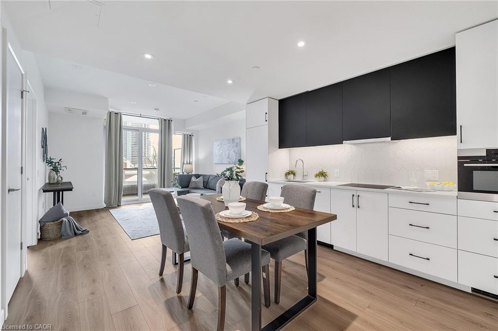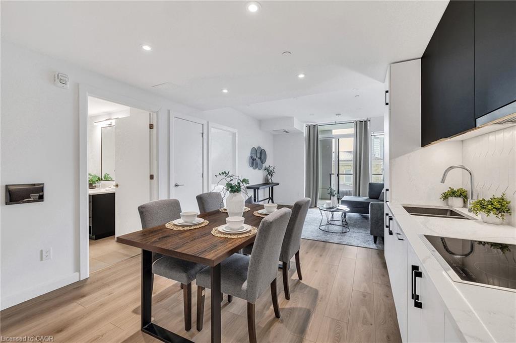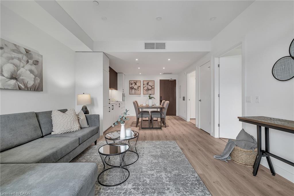 Modern urban living in the heart of Kitchener-Waterloo’s innovation district. Ideally located near Google, Sun Life, KPMG, Grand River Hospital, major universities, and highway access, with the ION LRT at your doorstep for seamless travel throughout Waterloo, Kitchener, and Cambridge. This stylish 1 bed, 1 bath, 629 Sq.Ft residence features Scandinavian-inspired design and the InCharge Smart Home System, offering control of lighting, climate, security, and energy usage via smartphone or touch panel. Enjoy heated bathroom floors, keyless entry, high-speed internet, a private terrace, and a European-style kitchen with quartz countertops and integrated appliances. Take advantage of every season on your private 99 Sq.Ft balcony. Premium building amenities include the Hygge lounge with café and fireplace, an outdoor terrace with saunas, communal dining, and lounge areas, plus bike storage, visitor parking, and a private locker—an exceptional opportunity in one of Kitchener’s most connected communities.