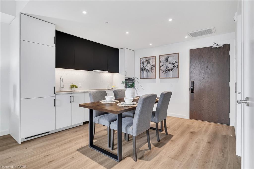 Modern urban living in the heart of Kitchener-Waterloo's innovation district. Ideally located near Google, Sun Life, KPMG, Grand River Hospital, major universities, and highway access, with the ION LRT at your doorstep for seamless travel throughout Waterloo, Kitchener, and Cambridge. This stylish 1 bed, 1 bath, 629 Sq.Ft residence features Scandinavian-inspired design and the InCharge Smart Home System, offering control of lighting, climate, security, and energy usage via smartphone or touch panel. Enjoy heated bathroom floors, keyless entry, high-speed internet, a private terrace, and a European-style kitchen with quartz countertops and integrated appliances. Take advantage of every season on your private 99 Sq.Ft balcony. Premium building amenities include the Hygge lounge with café and fireplace, an outdoor terrace with saunas, communal dining, and lounge areas, plus bike storage, visitor parking, and a private locker-an exceptional opportunity in one of Kitchener's most connected communities.