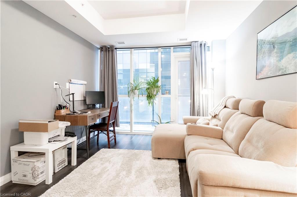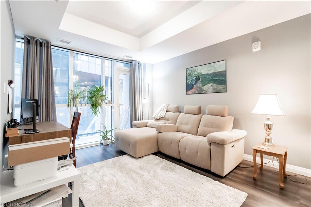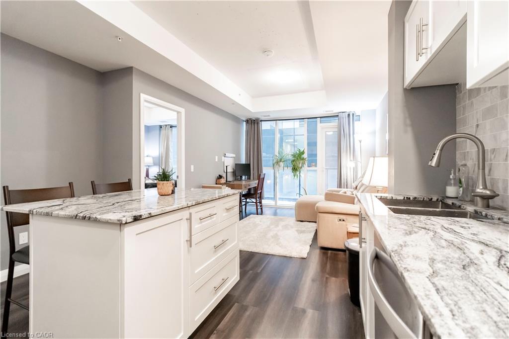 Looking for more space while being located in the heart of Kitchener? Here is an opportunity to have 800 square feet of pristine interior living space plus your own private balcony. This versatile 1 Bedroom plus Den (spacious walled in den with door) can easily be transformed into a 2 Bedroom and still offers a work from home area or extra storage space. The upgraded and carpet free condo suite features stainless steel appliances, granite countertops, kitchen island with seating, and insuite laundry. 108 Garment is loaded with amenities including an outdoor pool, fitness centre, outdoor terrace, basketball/sport court, yoga space, and media/party room. Enjoy being steps from the Innovation District, restaurants, Victoria Park, LRT, and the nightlife that downtown Kitchener offers. Included in the lease are Internet, Water, and Gas. Tenants' only requirements are Hydro and Insurance. This is an amazing opportunity to be a part of an attractive lifestyle in Downtown Kitchener. Parking is available for lease.