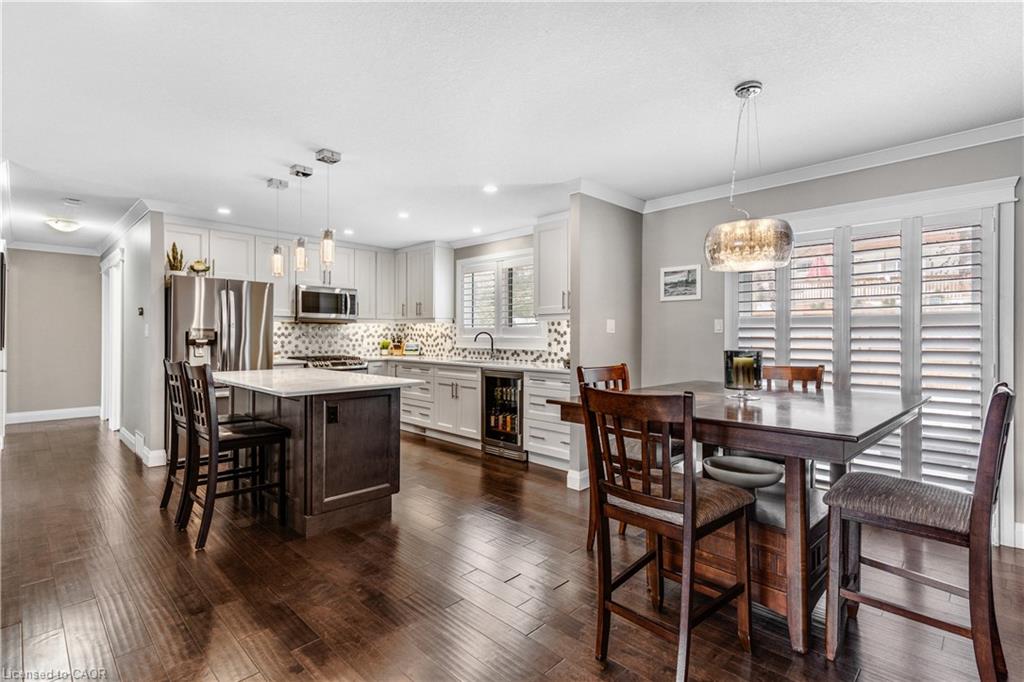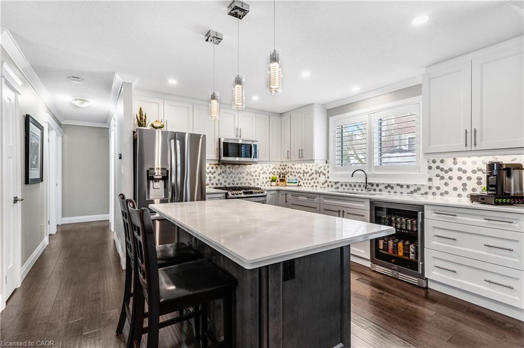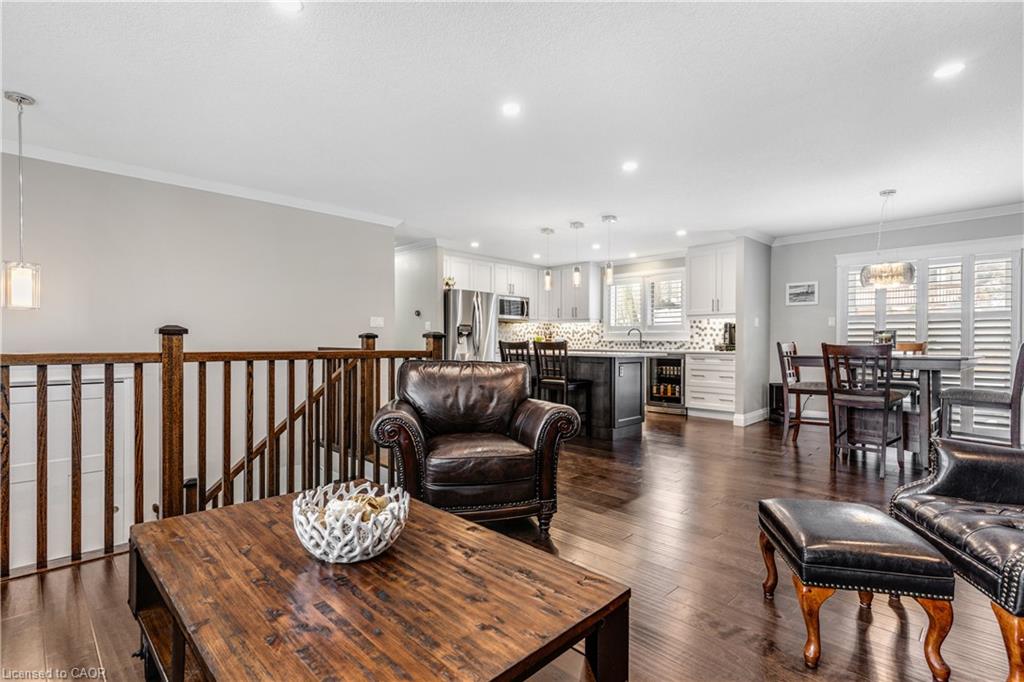 Welcome to 31 Dayman Court, a fully renovated raised bungalow tucked away on a quiet court with mature forest views, ideally located on the border of Kitchener and Waterloo, and just around the corner from Westmount Golf & Country Club. This move-in-ready 3-bedroom, 2-full-bathroom home offers open-concept main floor living and has been thoughtfully updated from exterior to interior with high-end finishes throughout. Features include crown moulding, flawless laminate flooring, quartz countertops, and quality fixtures. The bright lower level offers large windows, a spacious rec room, laundry, 3-piece bathroom, and a convenient separate entrance beside the oversized garage leading into a generous mudroom with direct garage access, providing excellent potential for an in-law setup. Upstairs showcases a tastefully renovated kitchen and living spaces, three generous bedrooms with large windows, and a 4-piece bathroom. Major updates completed in 2017 include roof, furnace, A/C, windows, doors, trim, and 100-amp electrical service on breakers. Additional improvements include blown-in cellulose attic insulation (2018), front steps (2024), and a freshly sanded and stained deck (2025). Extra long single-car garage and parking for two vehicles. Step outside to a fully fenced backyard featuring mature gardens, perfectly poised for beautiful spring blooms, an ideal space to relax, entertain, or enjoy your own private outdoor retreat. Enjoy a peaceful, family-friendly setting with quick access to shopping, parks, trails, transit, universities, and major commuter routes, offering the perfect blend of privacy, nature, and convenience.