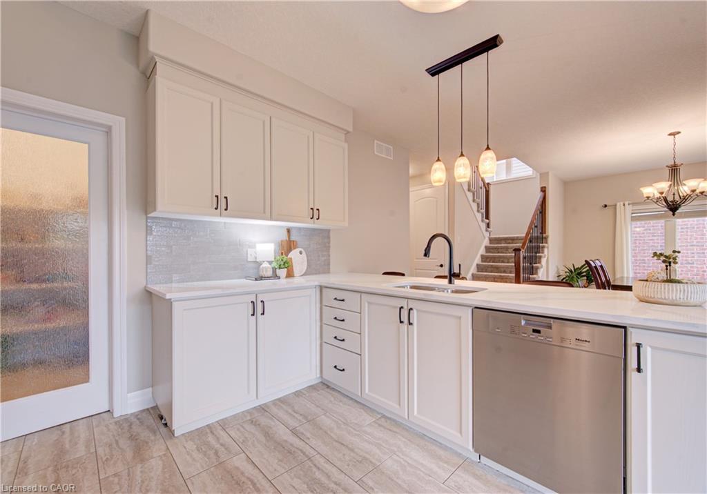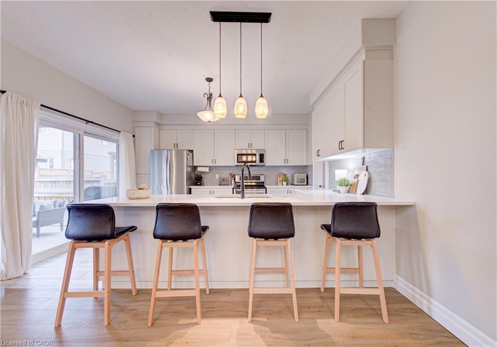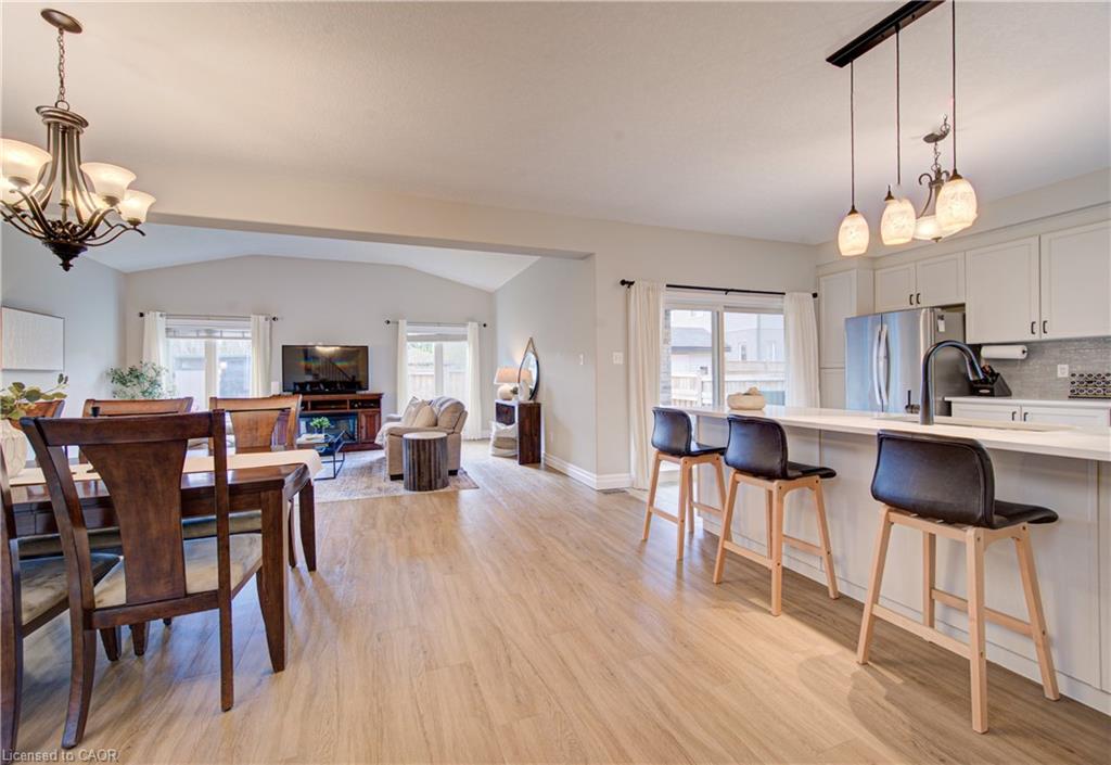 Beautifully updated West Galt home. Upon entering the spacious formal foyer you will feel the warmth this home has to offer. The main floor is carpet free featuring stylish and durable Luxury Vinyl Plank flooring ('23). The kitchen (refinished cabs '26) is a bright space acting as a the hub of the home. Here you will have a large walk in pantry, gorgeous quartz countertops ('26) complimented by the backsplash('26). You will also find an oversized slider leading to the covered deck. The dining room is a great size for family gatherings and flows into the living room complete with cathedral ceiling. The abundance of windows on the main floor allows for sun filled moments. Main floor laundry is an added convenience. You are lead to the second floor by architectural pickets. This level (carpet '23) allows for a large centre hall layout leading to 4 generous sized bedrooms with ample windows. The primary retreat is complete with a large walk in closet and 4 piece ensuite (new vanity). The main bath has also been updated with a new vanity. Both the main and second floor have benefitted from being professionally painted ('26). The finished basement is oversized allowing for lots of possibilities, perhaps a games room, home gym and/or theatre. The Den area allows for room to grow. This level also has a hobby area and three piece rough in for your future plans. Oversized windows allow for additional light and enjoyment. Other updates to this wonderful home are AC and Furnace in '21, Water softener in '20 and HRV in '25. The rear yard is complete with a shed, patio area to enjoy sunshine and a covered deck ideal for bbq's and unwinding. Ideally located close to amenities and convenient access to the 401.