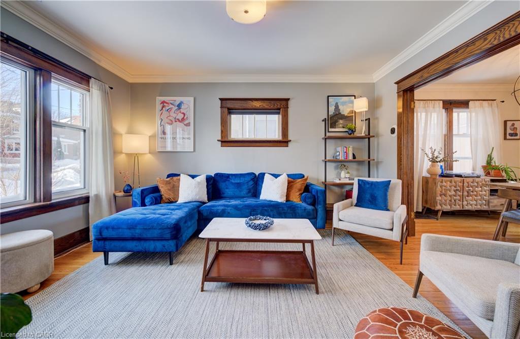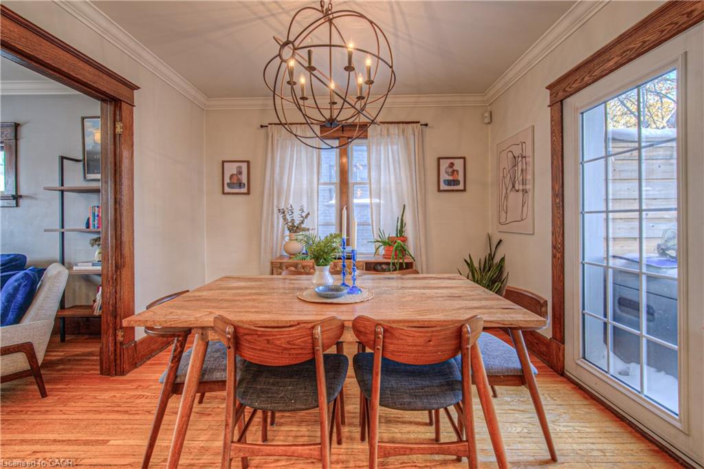 A warm welcome to this beautifully updated red brick home in Kitchener's desirable East Ward where it feels like home as soon as you arrive. With numerous meticulous updates throughout, you can move in and start enjoying the home right away. The front entrance features a large closet w/ classic white cabinetry & sets the tone for what else is to come. The family chef will love the beautifully updated kitchen (2020) w/ quartz counters & island, a gas stove, heated floors, pot lights, newer stainless appliances & a sizable pantry. The island marries the kitchen & dining room making for a special place for gathering. The main floor 2 piece bath (2020) also w/ a heated floor is an unexpected bonus. The original hardwood & trim found throughout the main floor continues to the upper level where you'll find the primary bedroom that comfortably fits a king sized bed, 2 more good sized bedrooms & the modern & stylish family bathroom w/ heated flooring (Fall 2024) as well as an elegant tile and glass shower. The walk up attic with light maple hardwood offers a great place for a home office away from the hustle and bustle of daily living. The functional lower level offers a cedar closet (Summer 2020), the laundry facilities and lots of storage. Garden doors lead from the dining room to the deck (with a gas hook up for you BBQ) & private backyard where you can watch the kids play while relaxing on the deck. New fence (Summer 2020), cedar trees and perennials make this a tranquil space. Next up is the garage with a newer poured concrete foundation and a must see for your inner garage enthusiast. Garage Sub Panel 60 amp (Fall 2024). Other updates include a new furnace & heat pump (Spring 2022), Electrical service upgrade to 200amp & new panel (Fall 2023). Perfectly situated within walking distance to the Farmer's Market, The Aud, coffee shops, restaurants, local shops, GO Transit and parks.